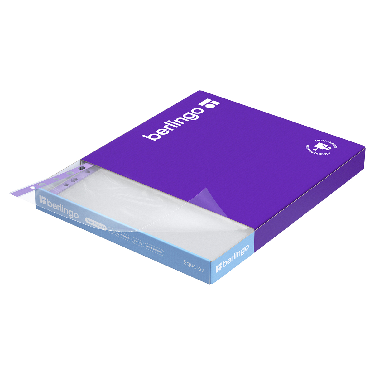 Папка-вкладыш с перфорацией Berlingo "Squares", А4, 60мкм, рельефная текстура, матовая, упаковка в картонный диспенсер