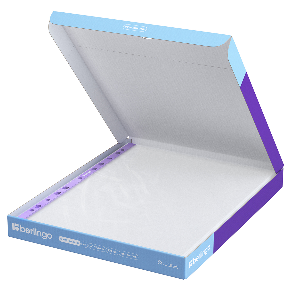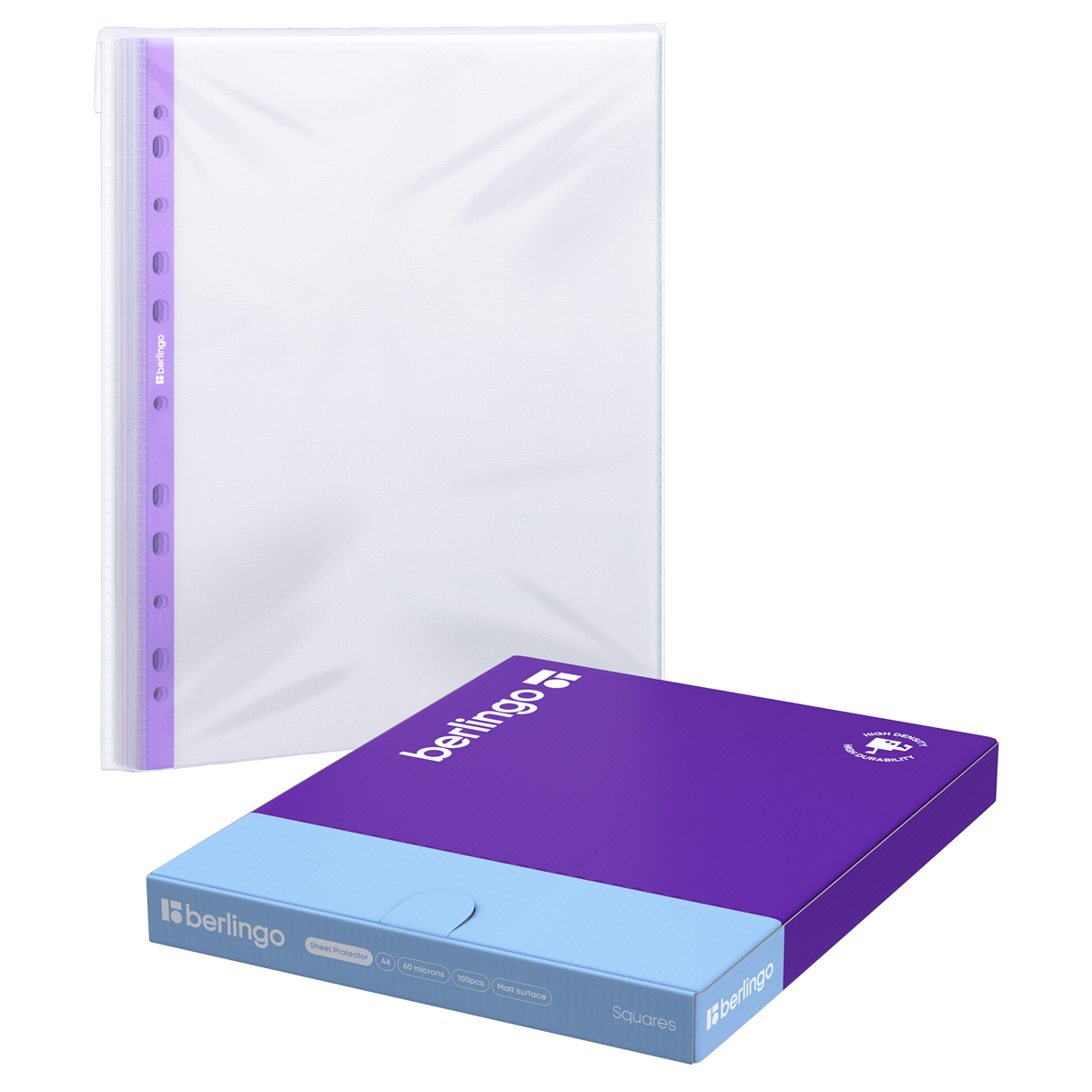 О товаре «Папка-вкладыш с перфорацией Berlingo "Squares", А4, 60мкм, рельефная текстура, матовая, упаковка в картонный диспенсер»