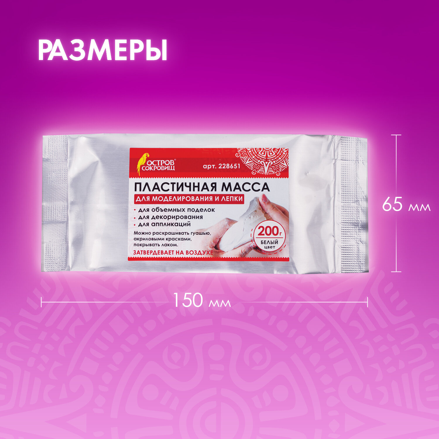 О товаре «Паста (масса) для лепки ОСТРОВ СОКРОВИЩ, самозатвердевающая, 200 г, натуральный белый, 228651»