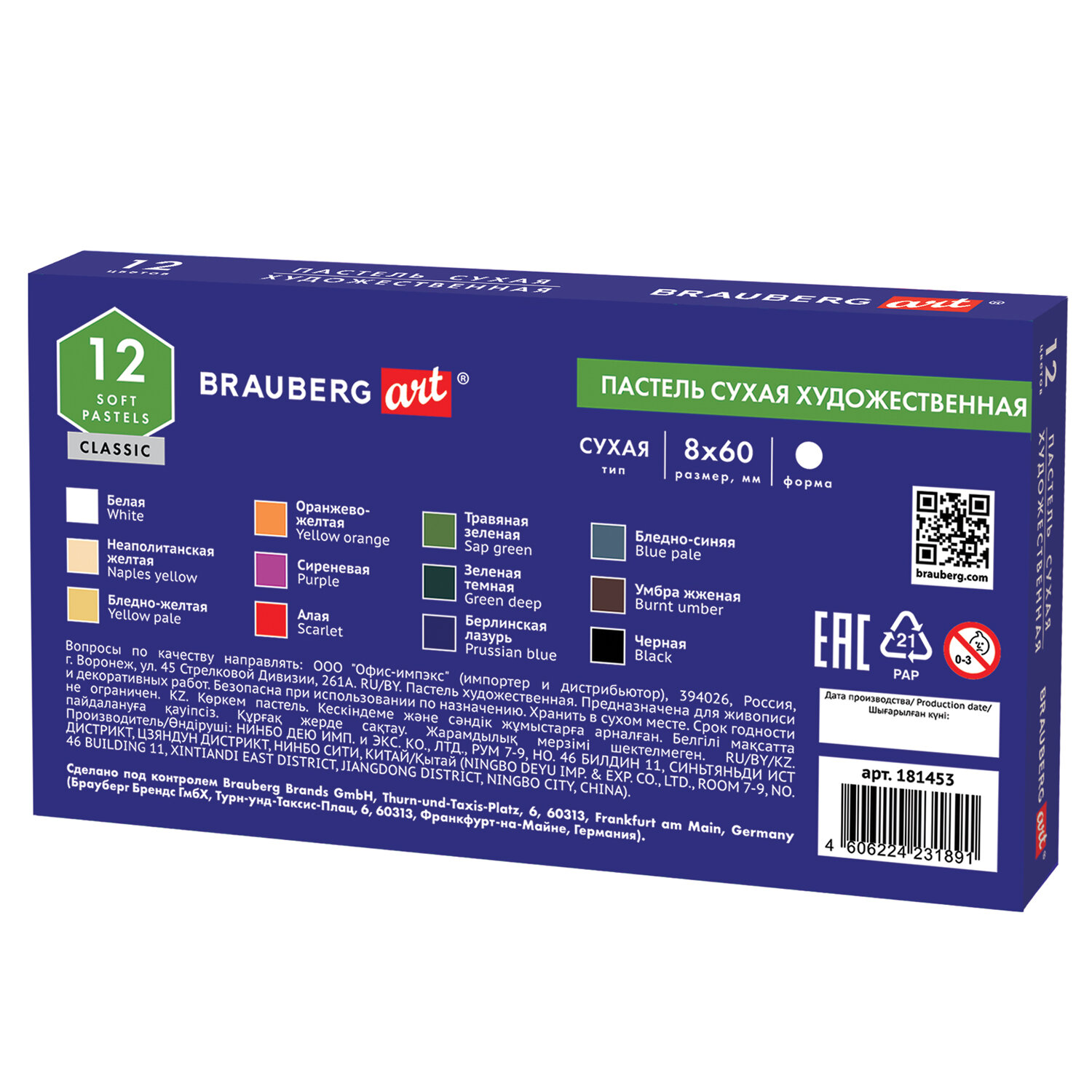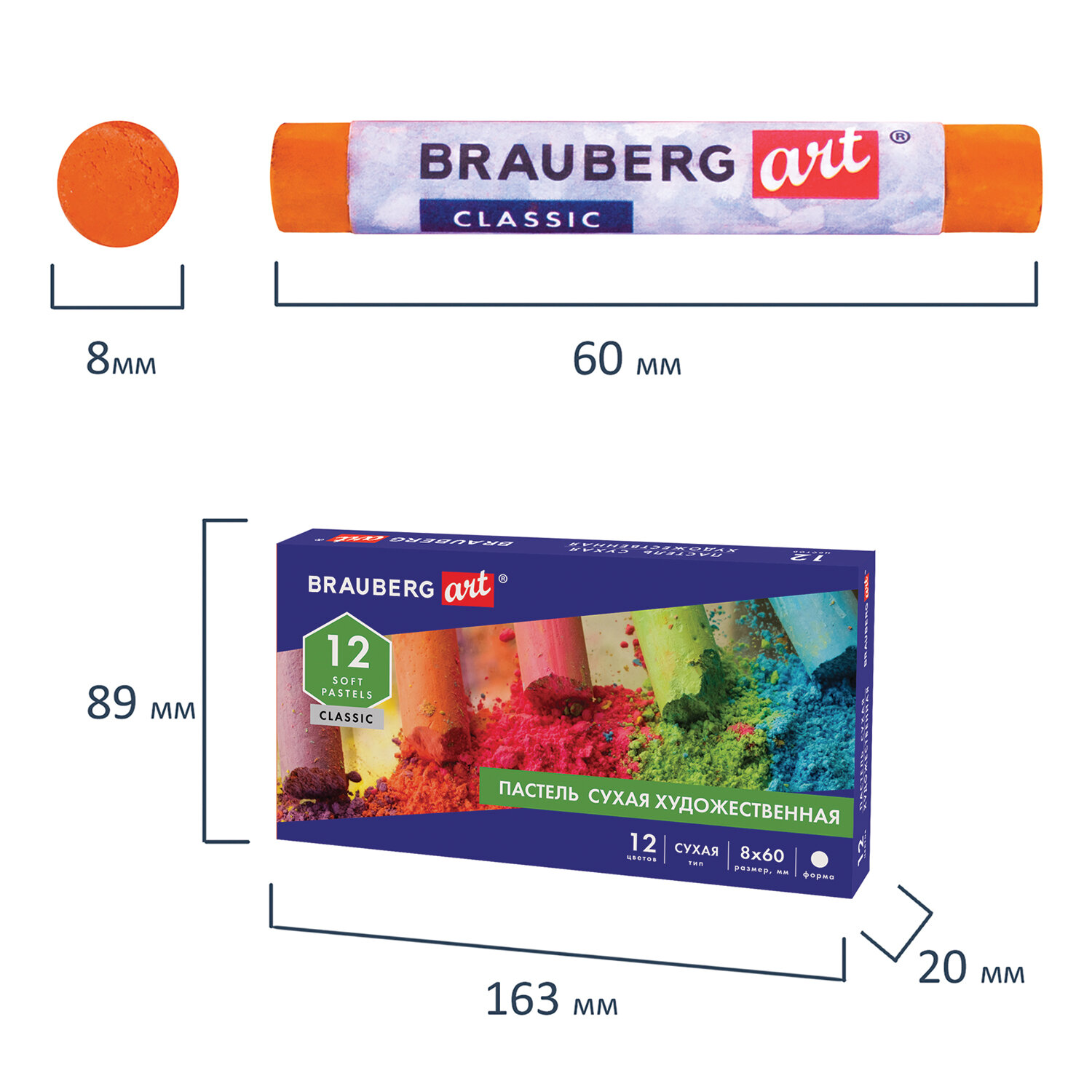 О товаре «Пастель сухая художественная BRAUBERG ART CLASSIC, 12 цветов, круглое сечение, 181453»