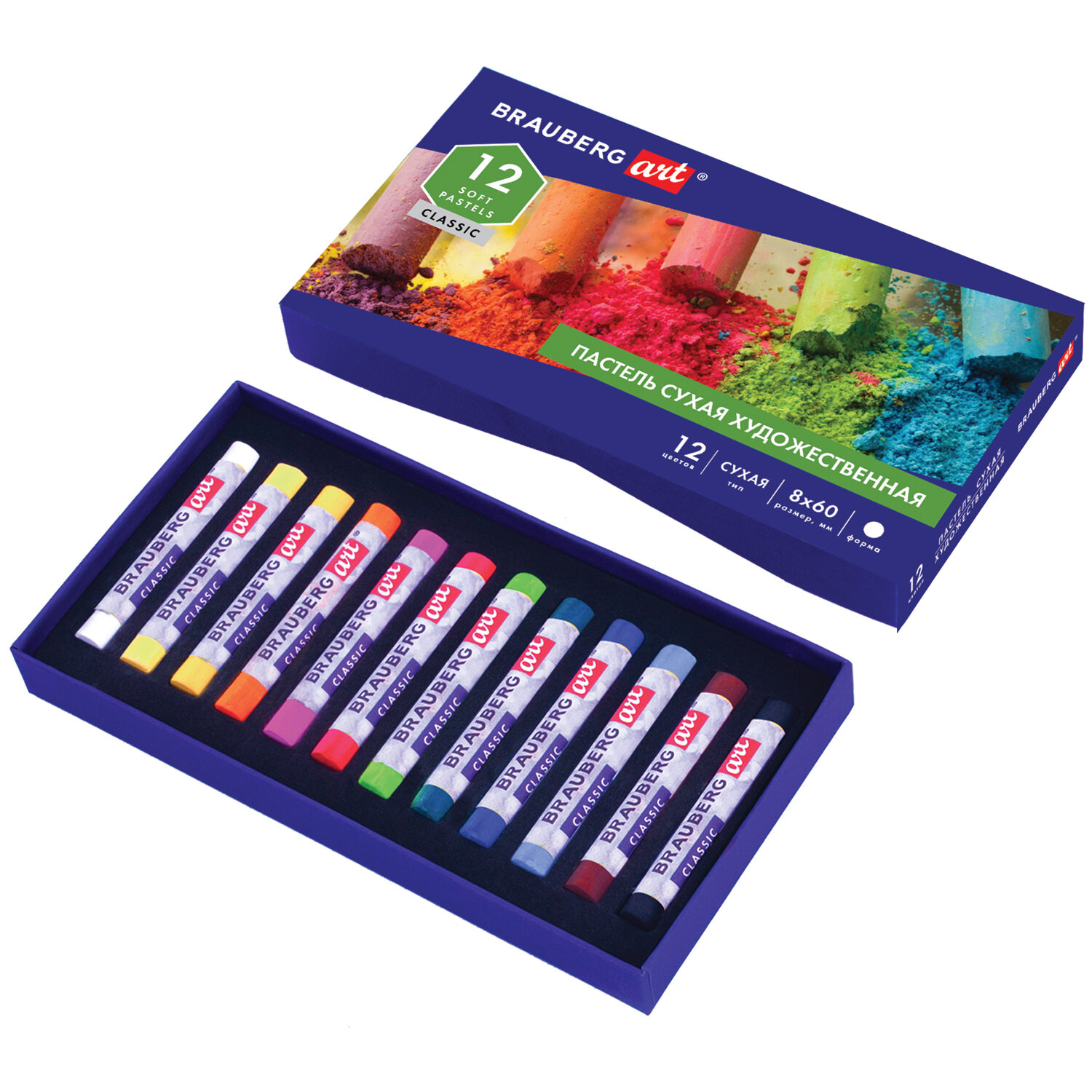 Пастель сухая художественная BRAUBERG ART CLASSIC, 12 цветов, квадратное сечение, 181464