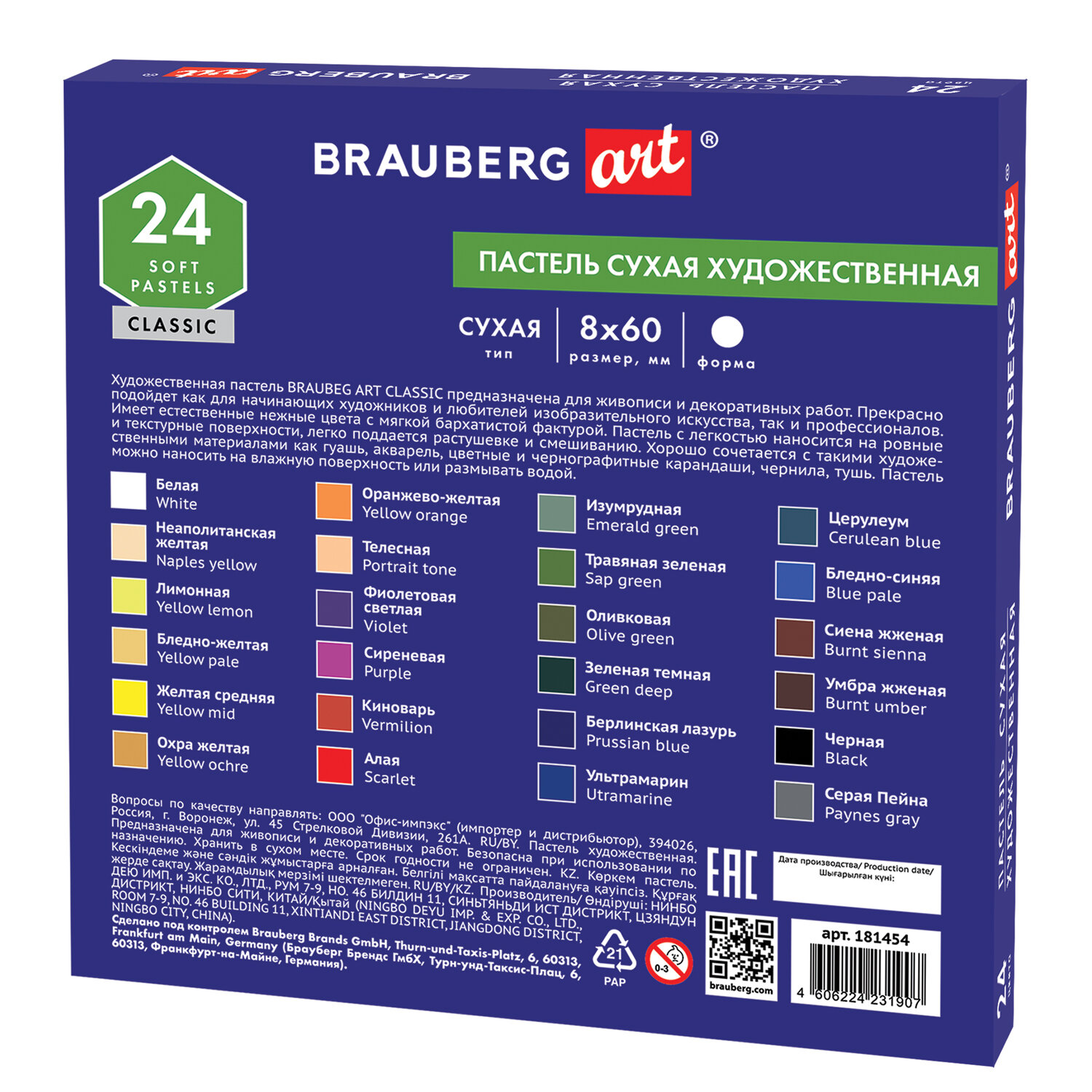 О товаре «Пастель сухая художественная BRAUBERG ART CLASSIC, 24 цвета, круглое сечение, 181454»
