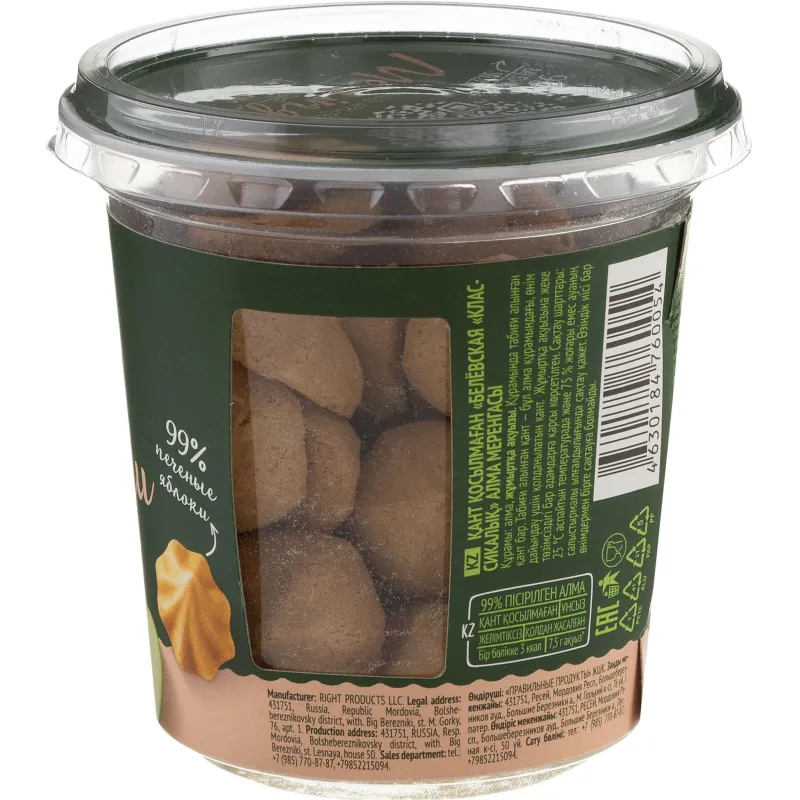 Хрустящие, аккуратные меренги, которые так и тают во рту, способны влюбить в себя истинных ценителей натуральных сладостей. Состав порадует своей натуральностью: меренги выполнены из яблок и не содержат сахара, что отлично влияет на здоровье, и служит прекрасной альтернативой вредным десертам. Как известно, польза яблок высоко ценится врачами и диетологами по всему миру. В яблоках содержатся витамины A, С, В1, В2, РР и Е, а также магний, фосфор, йод, железо, селен, калий, кальций и цинк. Яблоки в составе меренги положительно влияют на организм: придают жизненных сил, улучшают работу мозга и укрепляют организм.