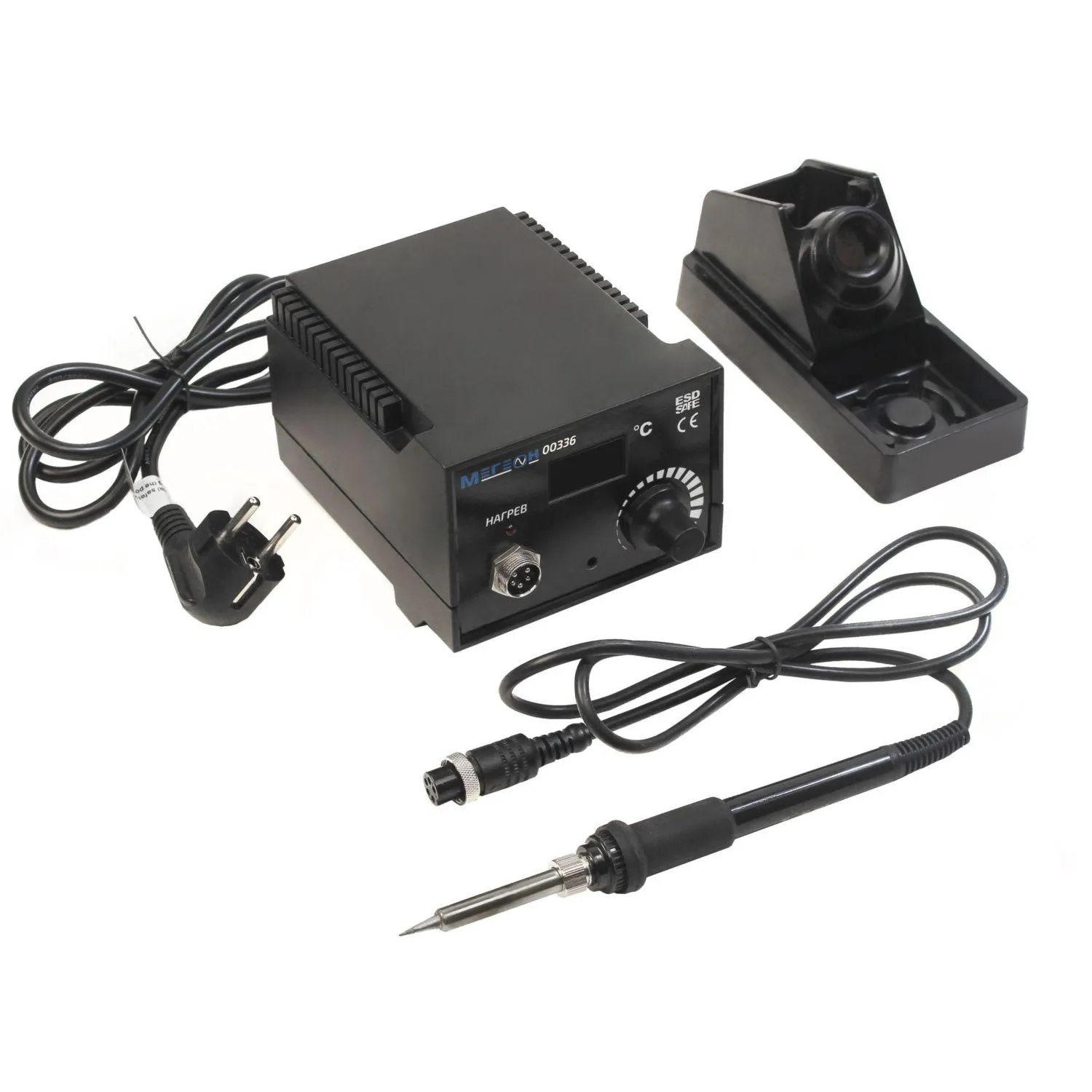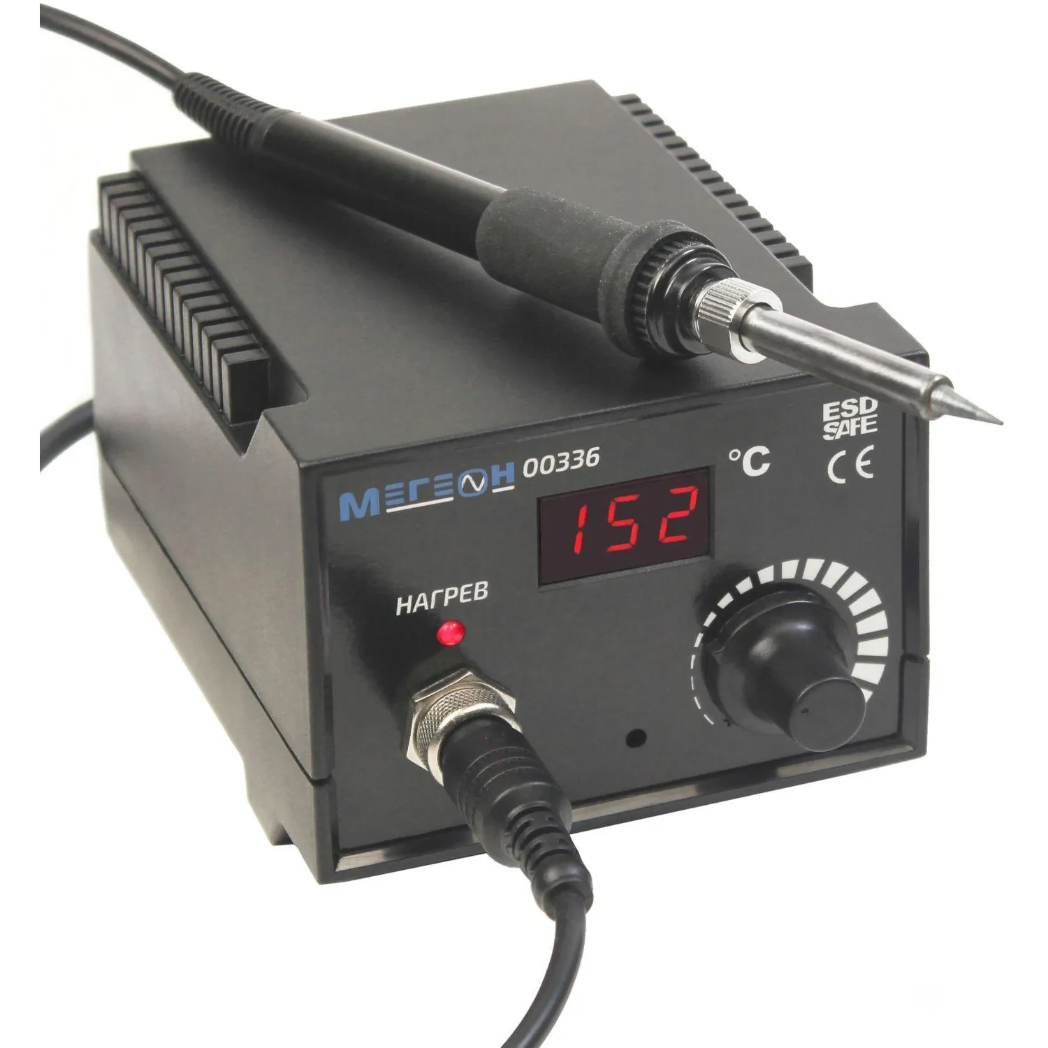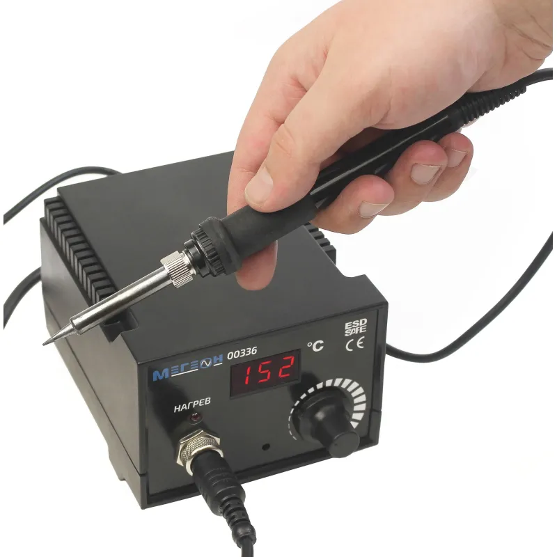 Мегеон 00336 — это удобный паяльник с ярким светодиодным дисплеем и аналоговым регулятором установки температуры. Немаловажным преимуществом при работе с паяльником является маленький вес, мягкий провод и компактные размеры блока управления. На рукоятке предусмотрена резиновая накладка против скольжения. Жало паяльника имеет распространенный типоразмер 900