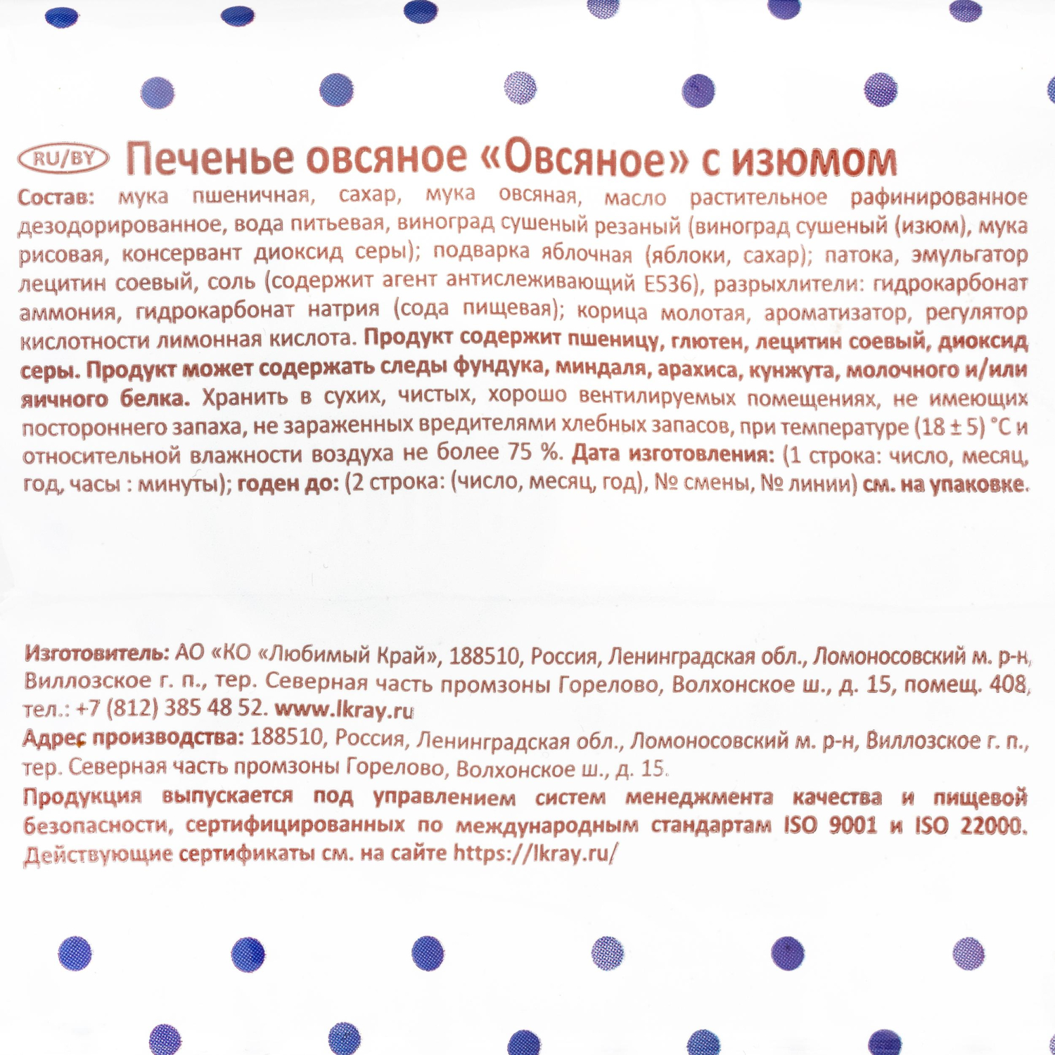 О товаре «Печенье овсяное Посиделкино с изюмом 310 г»