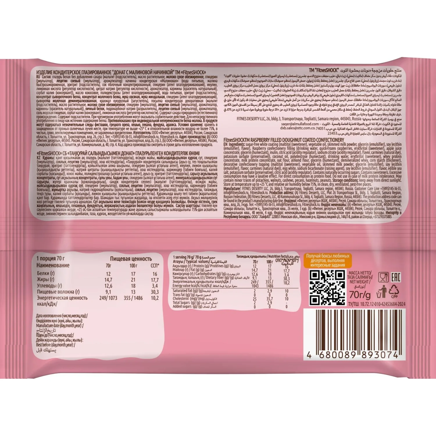 О товаре «Печенье FitnesSHOCK Донат с малиновый начинкой, 70г»