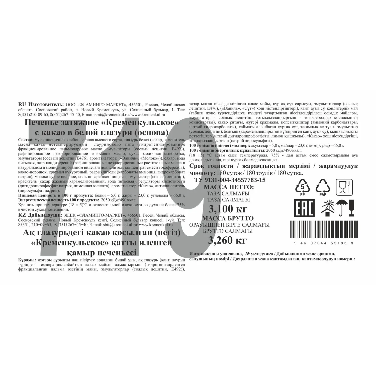 О товаре «Печенье Кременкульское затяжное с какао в белой глазури, 3,1кг/уп»