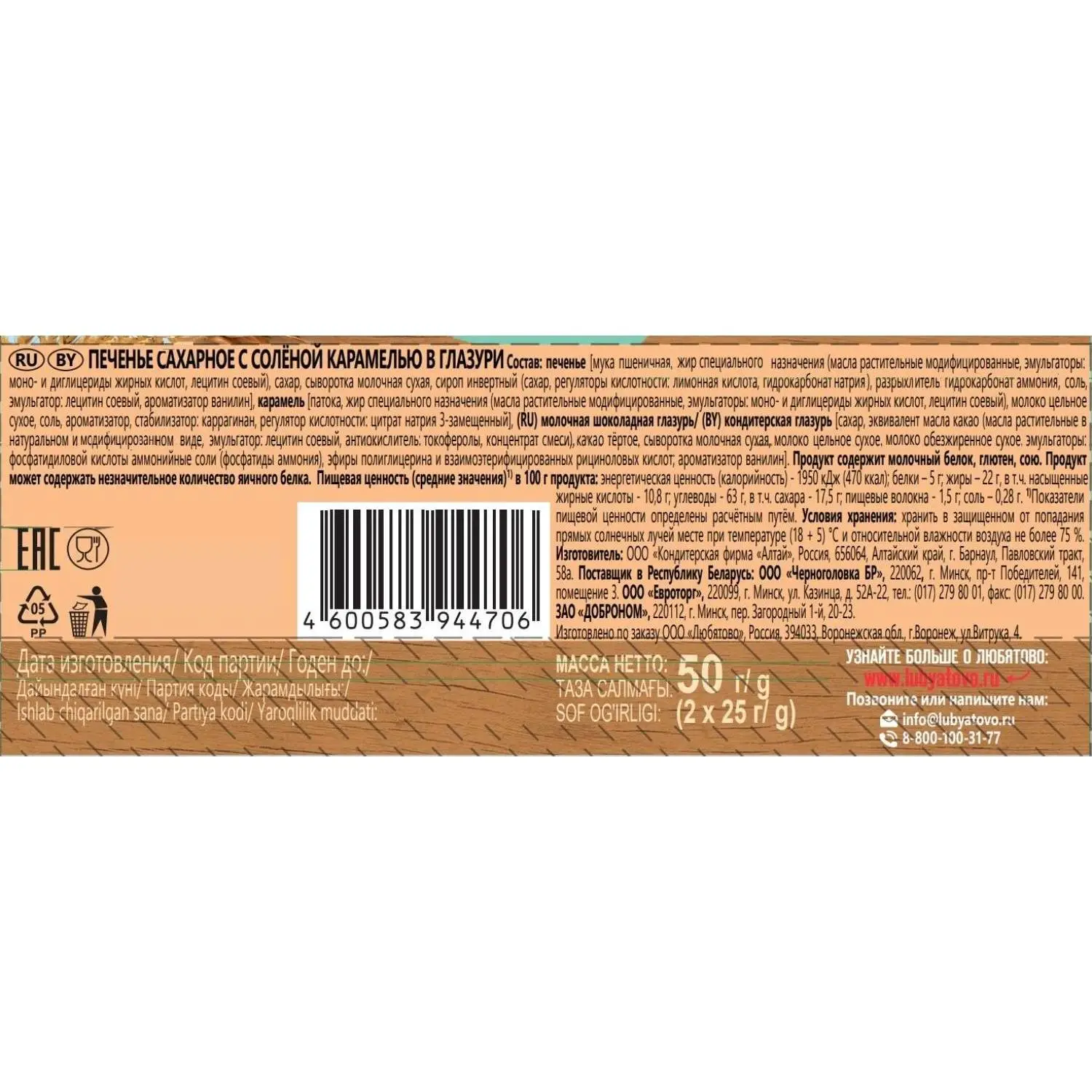 О товаре «Печенье Любятово сахарное с соленой карамелью в глазури, 50гx12шт/уп»