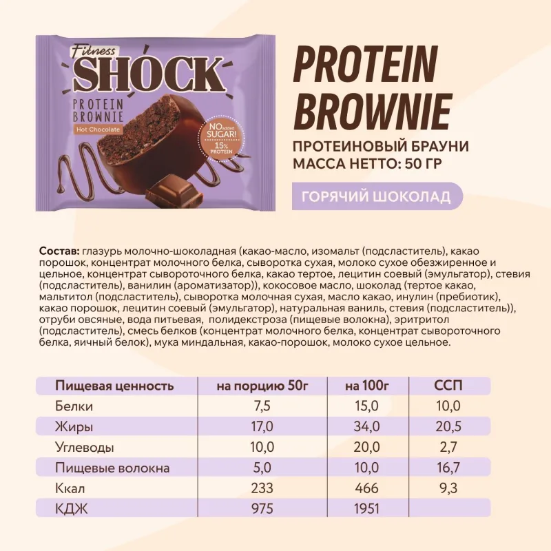 О товаре «Печенье протеиновое FitnessShock Брауни Горячий шоколад 50 г»