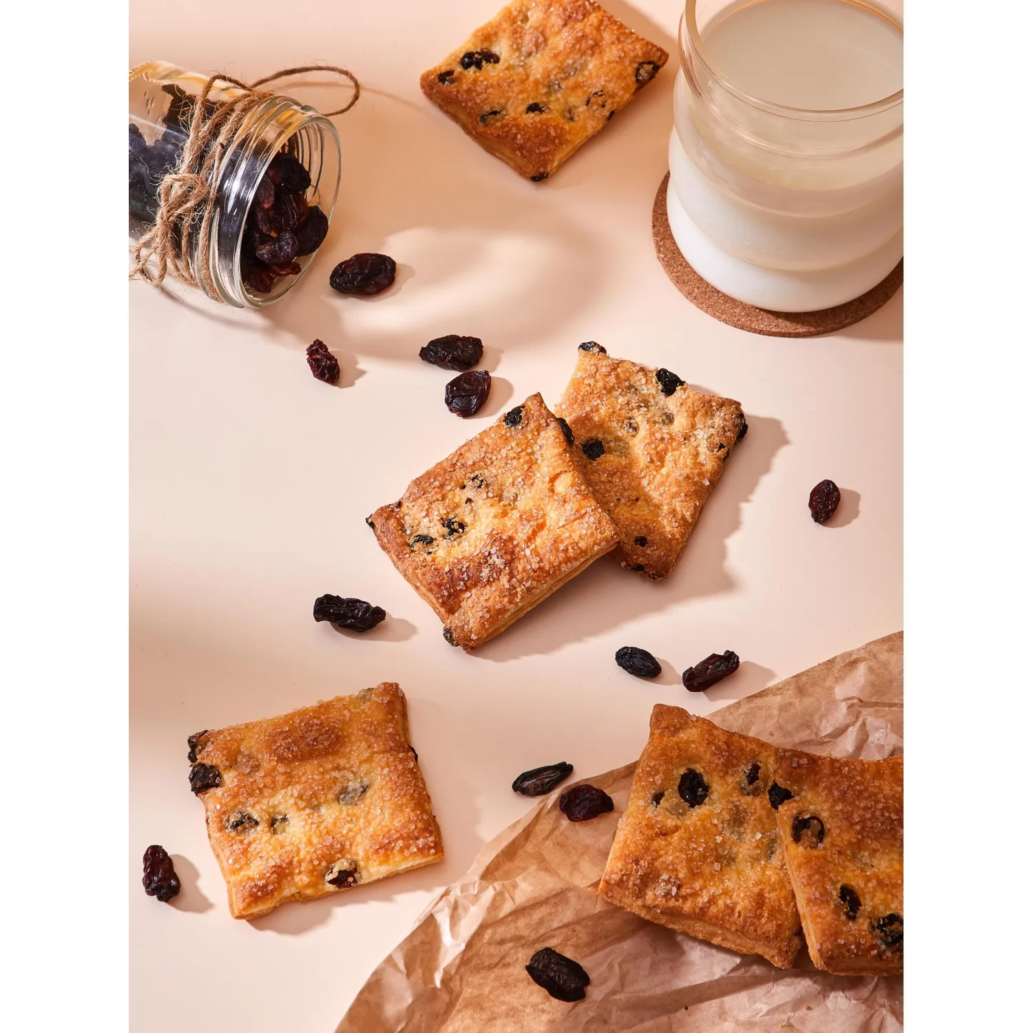 Нежное хрустящее изделие с большим количеством сладкого изюма.