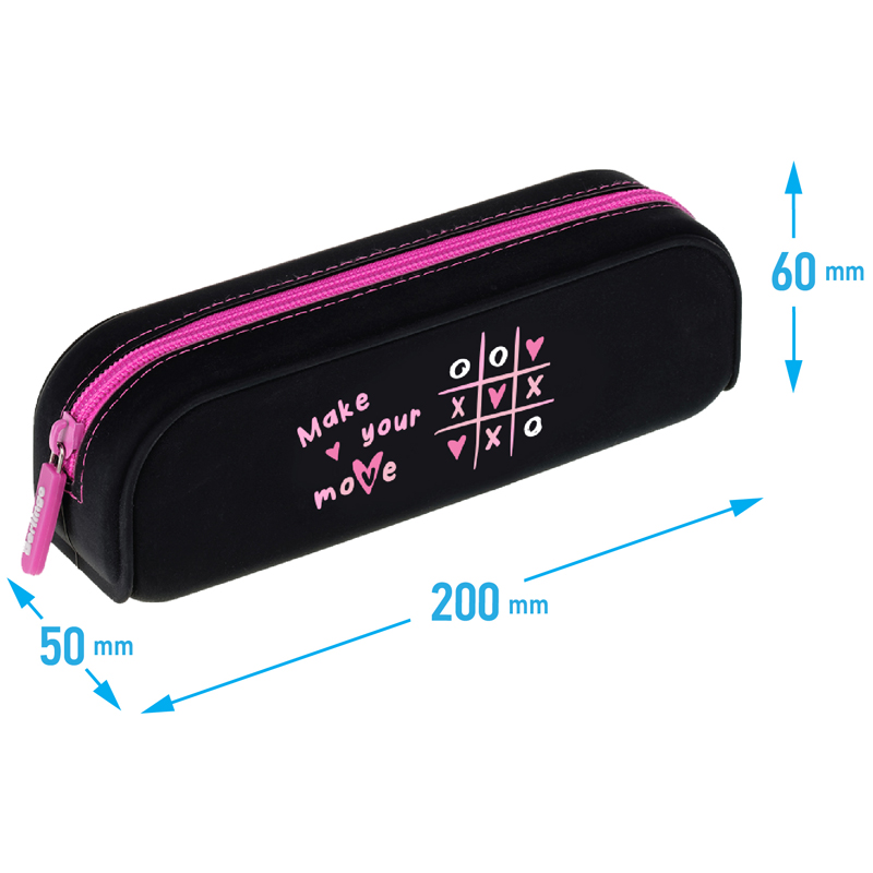 Пенал школьный мягкий Berlingo Make your move из высококачественного силикона размером 200*60*50 мм имеет одно отделение. Стильный чёрный пенал с контрастной розовой молнией и ярким рисунком понравится девочкам. Пенал упакован в пластиковую коробку с европодвесом. Поставляется без наполнения.