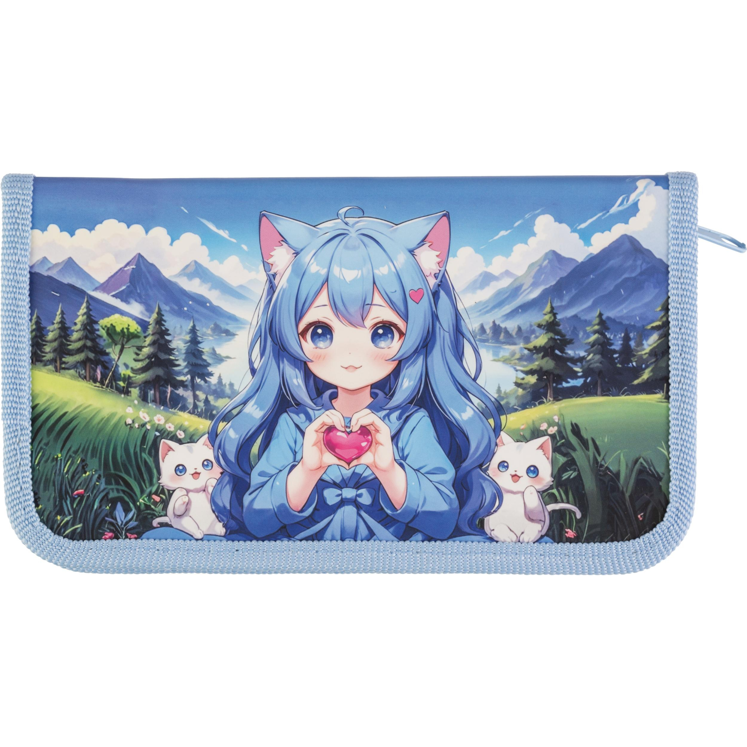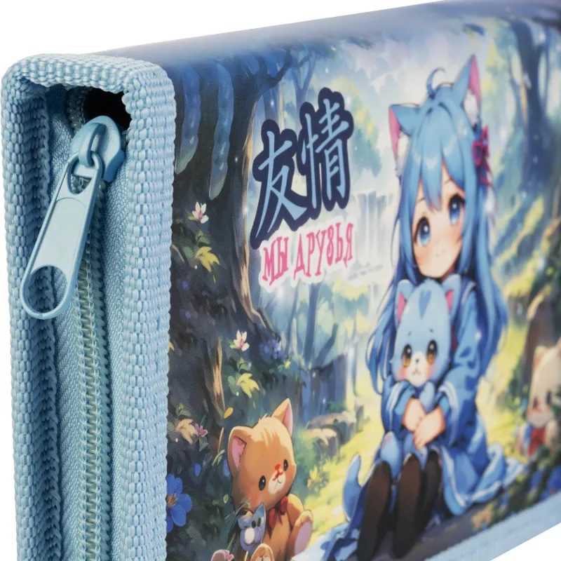 Корпус изделия изготовлен из прочного картона, обтянутого полиэстером. Такая комбинация материалов обеспечивает жёсткость конструкции и устойчивость к истиранию. Поверхность украшена ярким рисунком в стиле аниме, который придётся по вкусу девочкам младшего школьного возраста и дошкольницам. Благодаря компактному размеру 19×11×2.7 см пенал легко помещается в рюкзак или сумку.