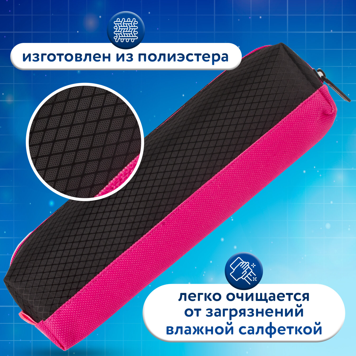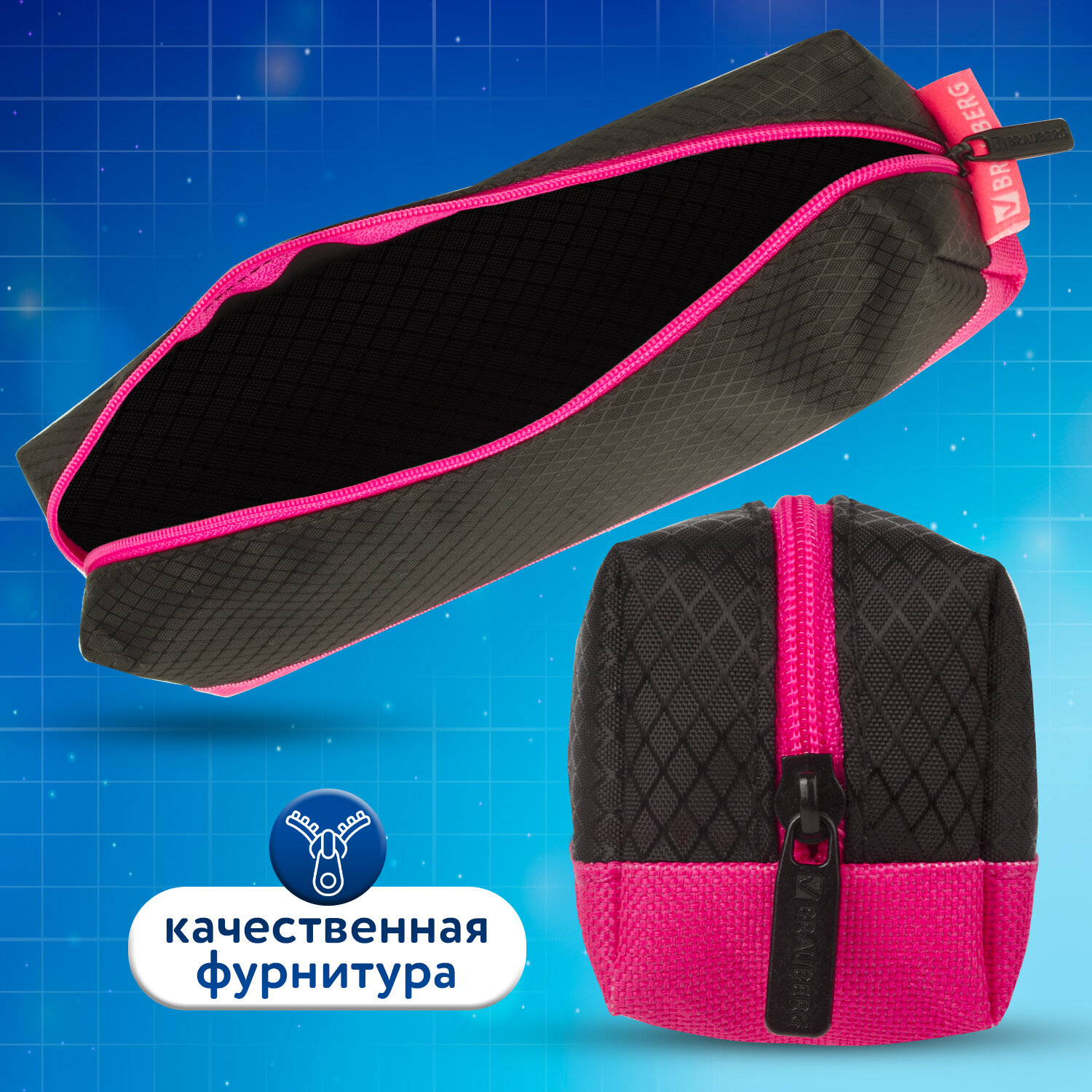 Пенал-косметичка BRAUBERG, мягкий, "Black&Bright", черно-розовый, 21х5х5 см, 229006