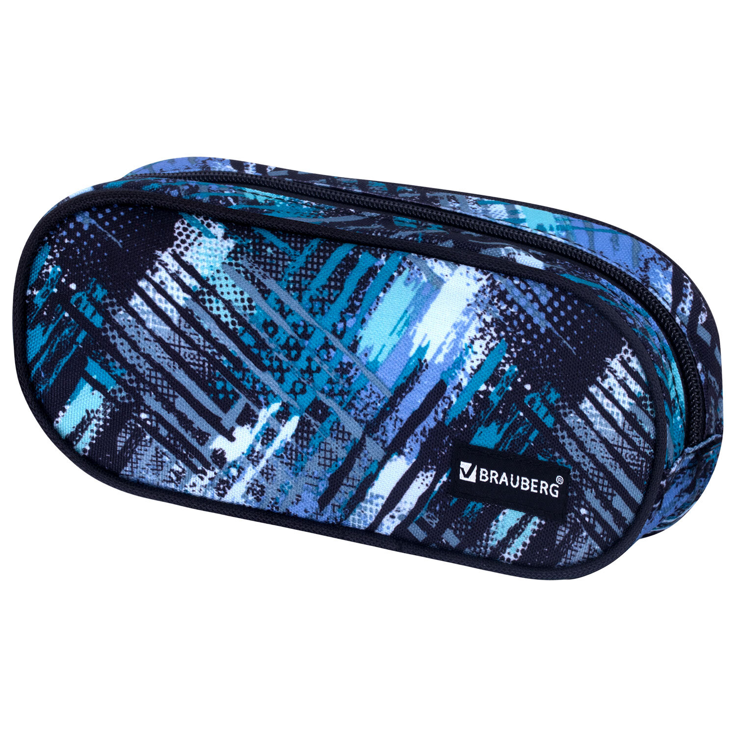 Пенал-косметичка BRAUBERG овальный, полиэстер, "Lines", 22х9х5 см, 229273