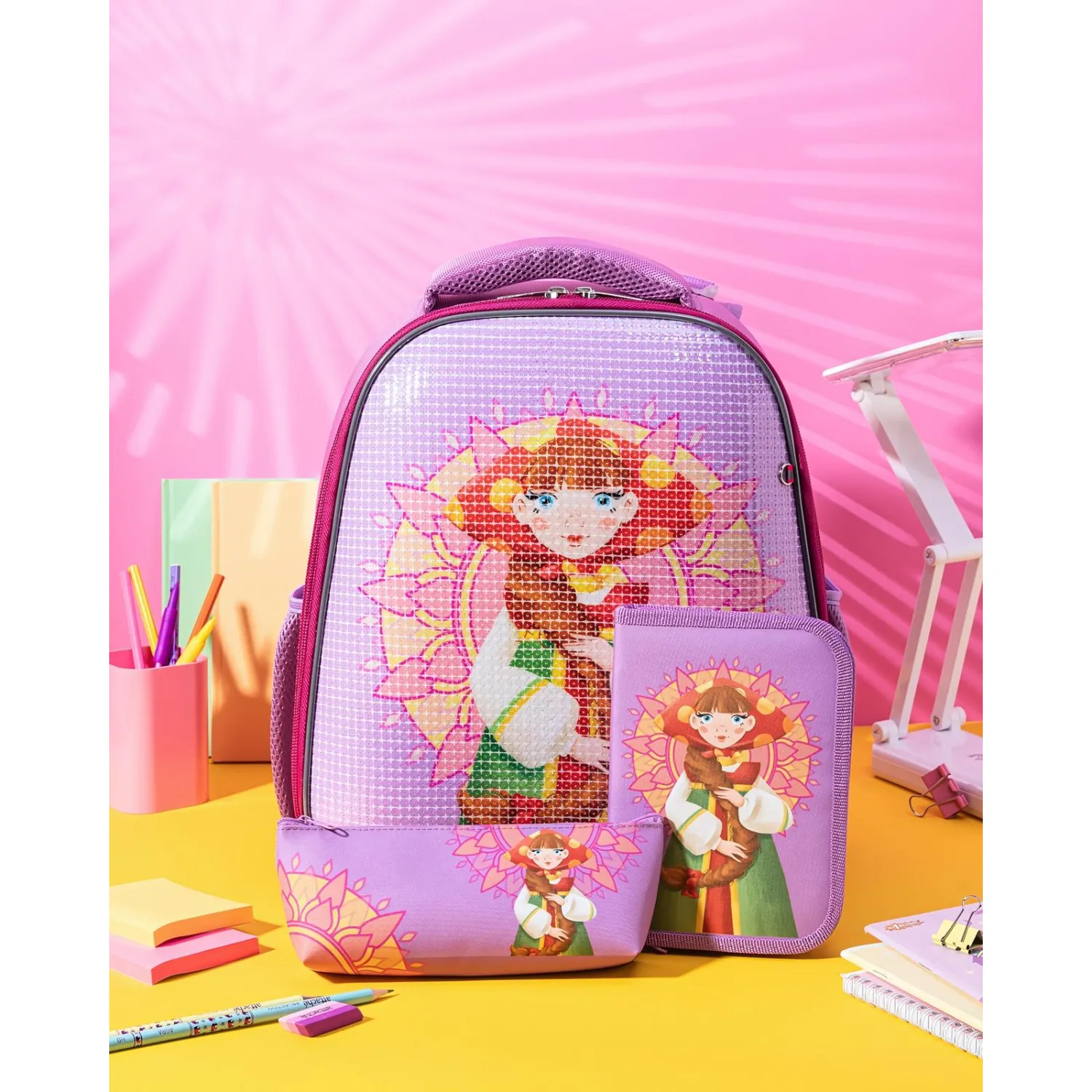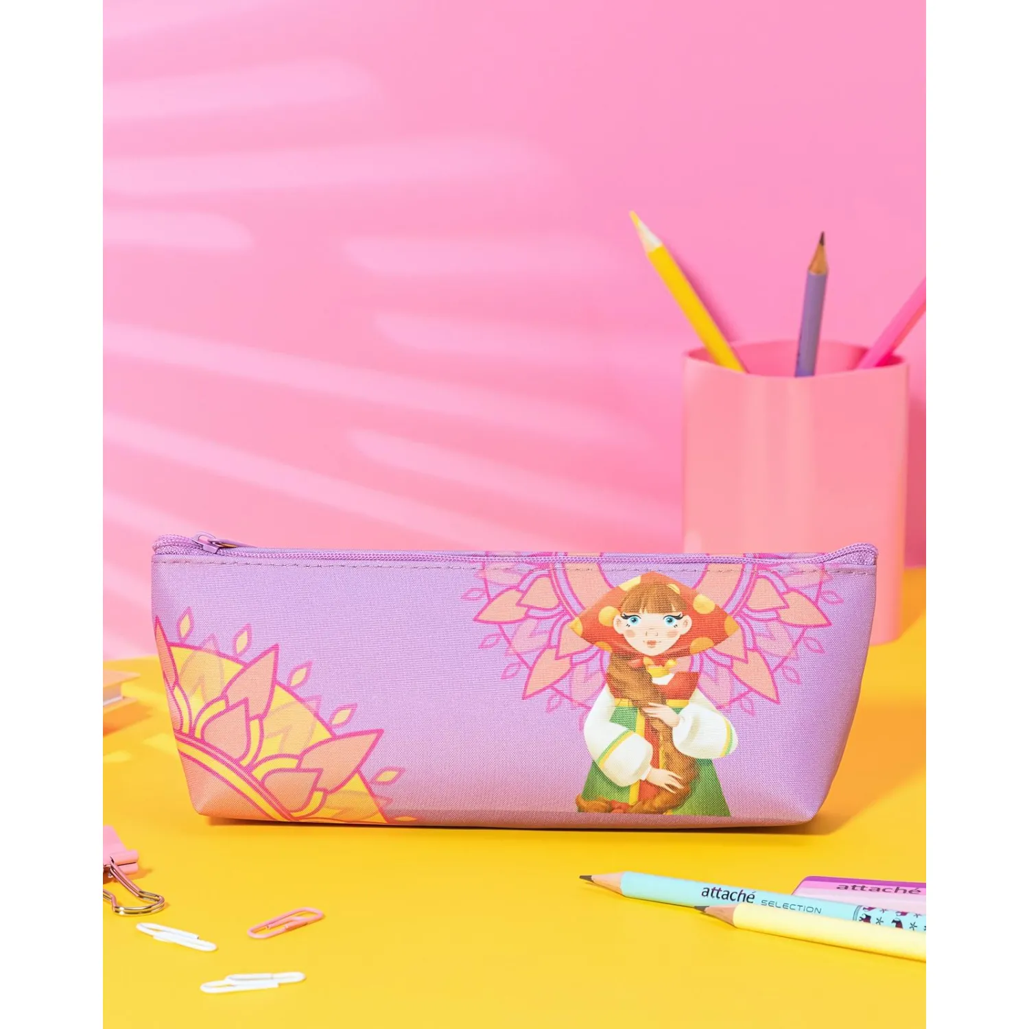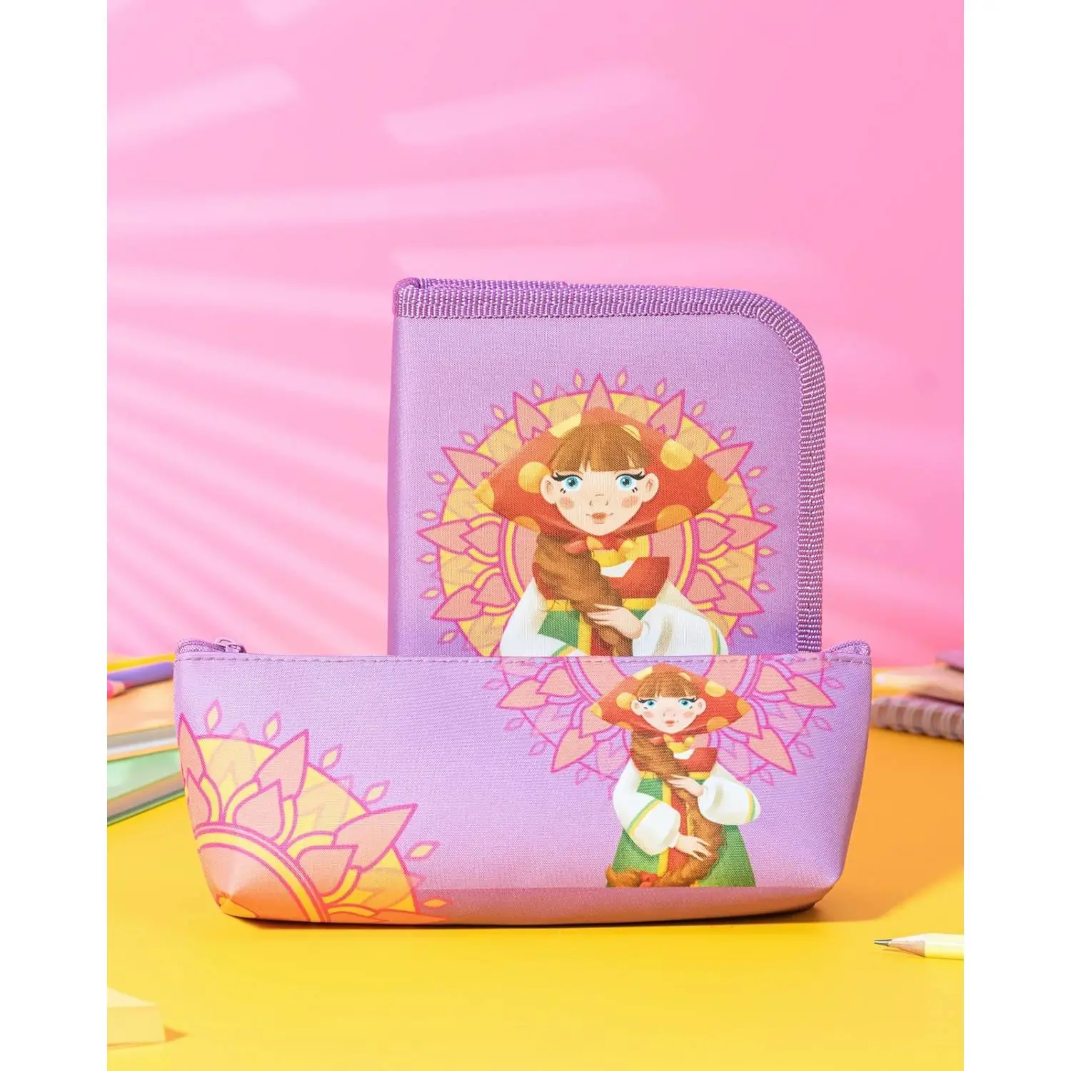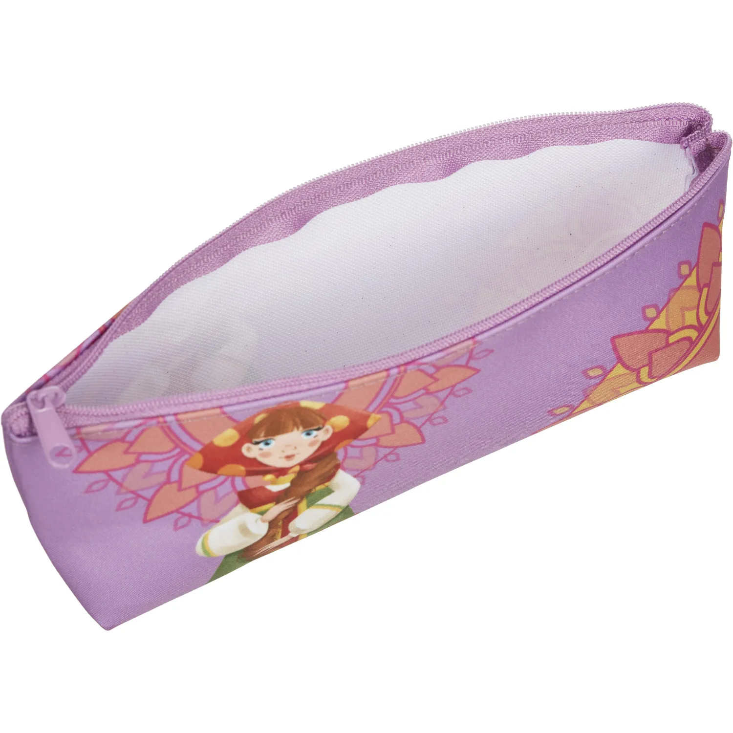 Пенал-косметичка Комус Три богатыря Любава. Вместительное отделение для канцелярских принадлежностей застегивается на молнию. Изготовлен из полиэстера. Без наполнения. Размер: 20×10×4 см. Дизайн: героиня мультфильма 'Три богатыря' — Любава.