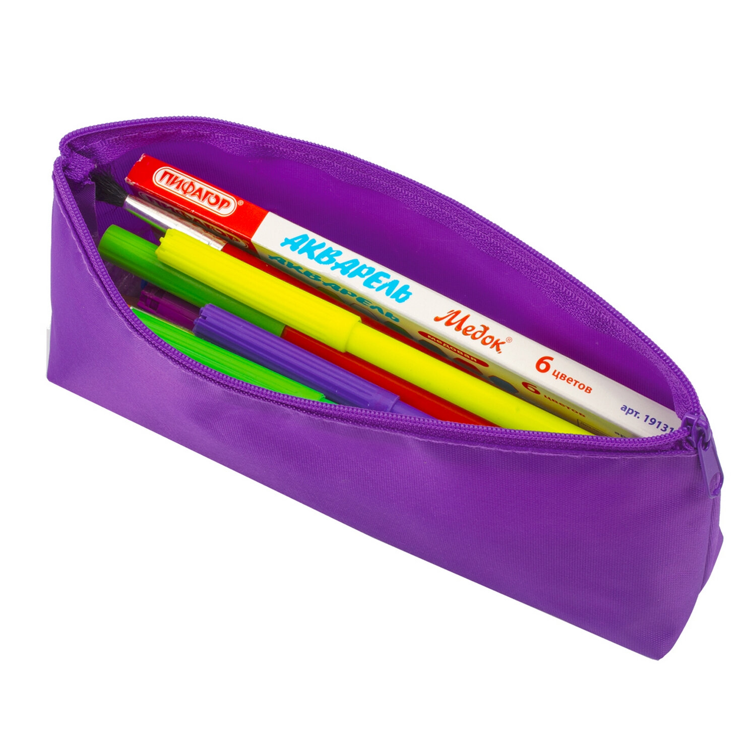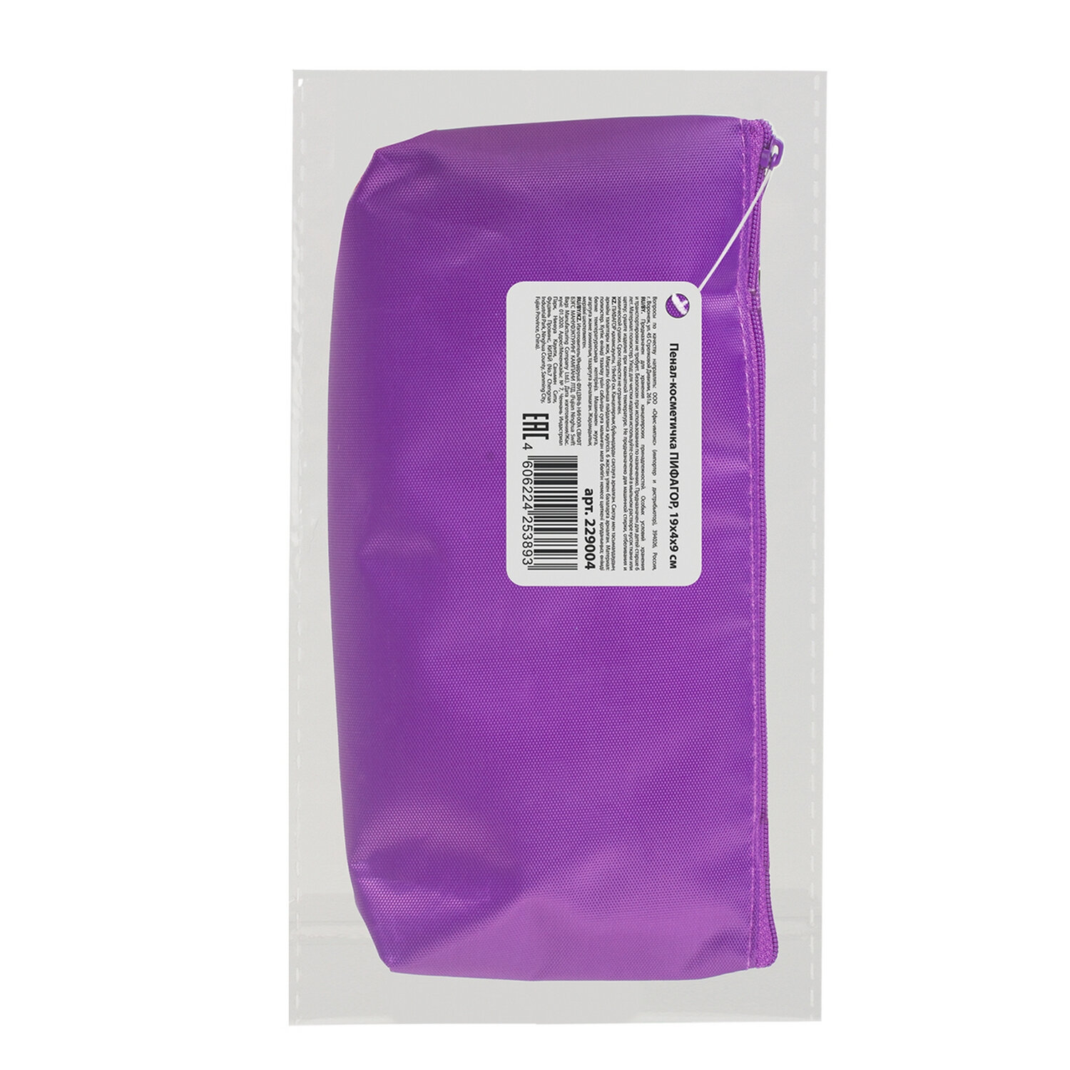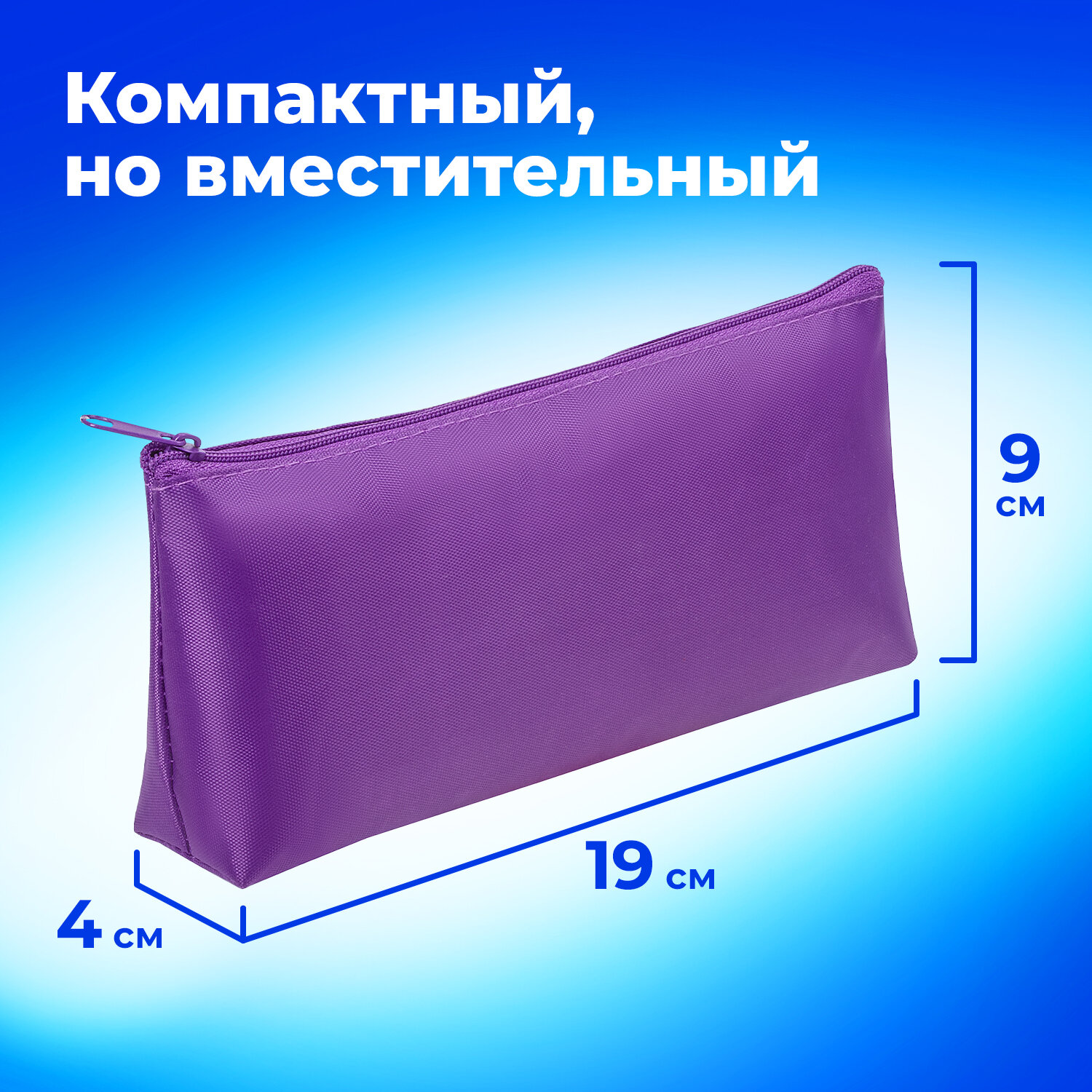 О товаре «Пенал-косметичка ПИФАГОР на молнии, текстиль, фиолетовый, 19х4х9 см, 229003»