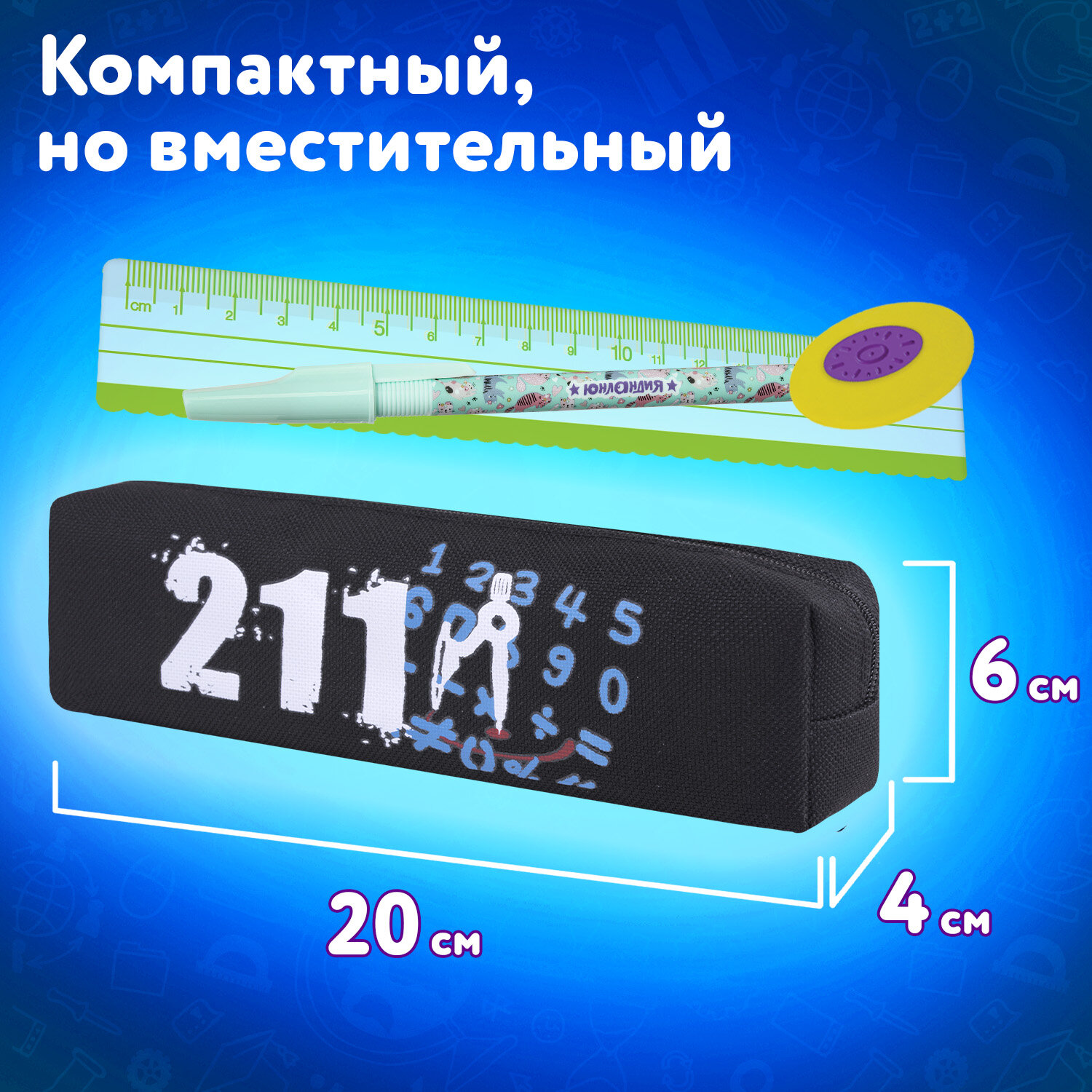 О товаре «Пенал ЮНЛАНДИЯ ЮНИОР, 1 отделение, полиэстер, "Maths", 20х6х4 см, 273808»