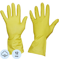 Перчатки МНОГОРАЗОВЫЕ латексные LAIMA "ПРЕМИУМ", хлопчатобумажное напыление, СВЕРХПЛОТНЫЕ, размер 6,5-7, S (малый), желтые, вес 55 г, 600570