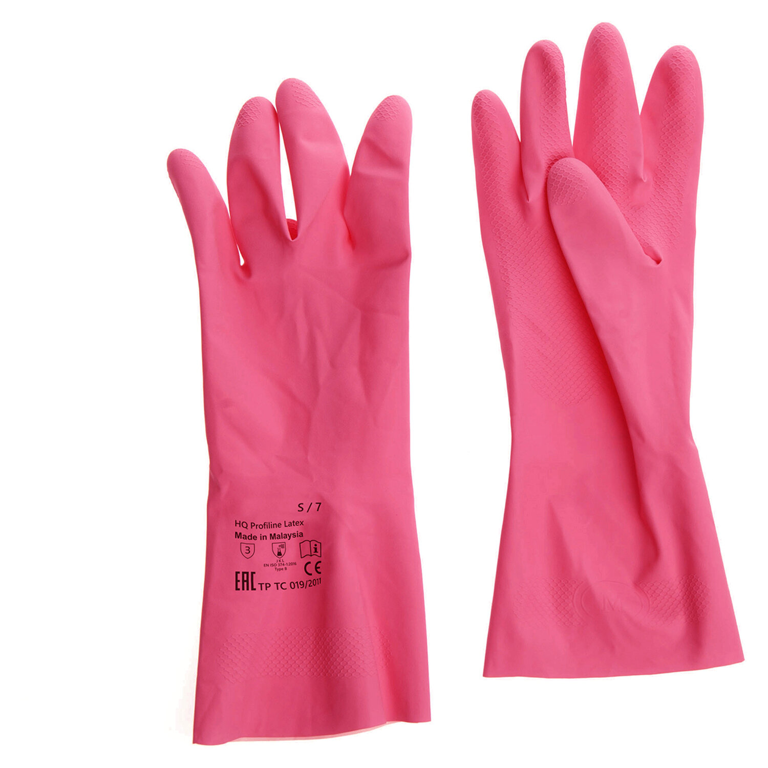 Перчатки Hq Profiline. Размер: 7, S. Розовый в кодировке HACCP, оттенок может быть от красного до розового. Длина перчаток: 310 мм. Толщина: 0,35 мм. Средний вес пары: 46.5 г (допустимая погрешность 45–48 г.). Материал: латекс 70%, добавки 30%. Манжета: закатанный край. Рельефная поверхность области захвата. Степень защиты от кислот: 80% (L - серная кислота). Степень защиты от щелочей: 40% (K - гидроокись натрия). Многоразовые латексные перчатки для ежедневной уборки. Хлопковое напыление обеспечивает комфорт во время работы. Прочные на растяжение и прокол. Долговечные. Количество в упаковке: 1 пара. Количество упаковок в транспортном коробе: 50.