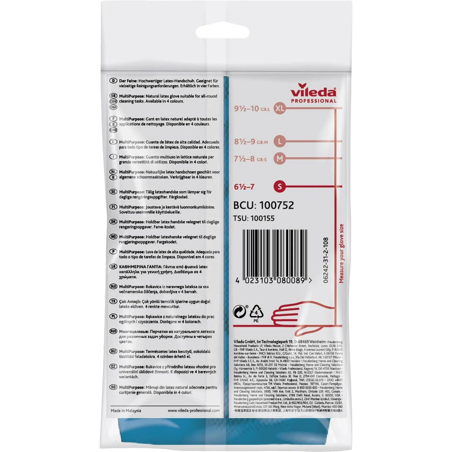 Перчатки Многоцелевые от Vileda Professional, размер S, из латекса предназначены для профессиональной уборки и другого широкого круга задач, включая уборку помещений и работу с продуктами питания. Защищают от вирусов. Перчатки Многоцелевые эффективно защищают руки во время уборки. Подходят для использования с разведенными моющими средствами и дезинфектантами. жёлтые и синие перчатки с ограничением подходят для работы с продуктами питания в столовых, кафе, барах и на кухнях. Применимы для работы на сухих и влажных участках.