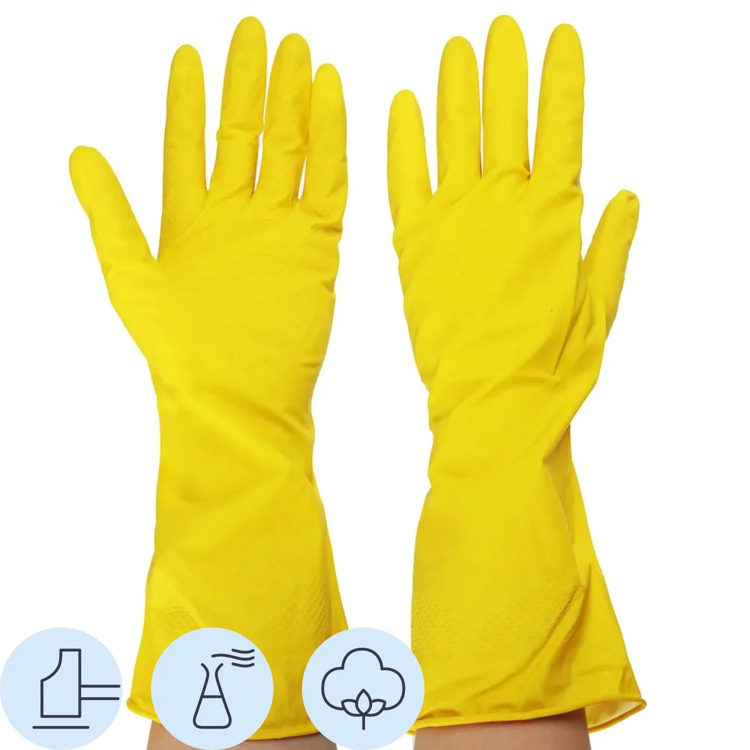 Перчатки из натурального латекса, КЩС тип 2 с хлопковым напылением. Толщина 0.35 мм. Одна пара в упаковке. Подходят для многоразового использования.