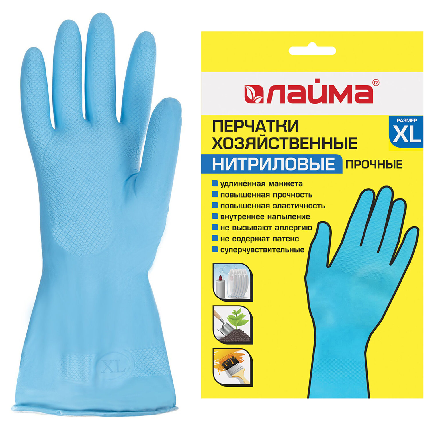 О товаре «Перчатки МНОГОРАЗОВЫЕ нитриловые LAIMA ГИПОАЛЛЕРГЕННЫЕ, х/б напыление, ПРОЧНЫЕ, размер 9-10, XL (очень большой), синие, вес 40 г, 605000»