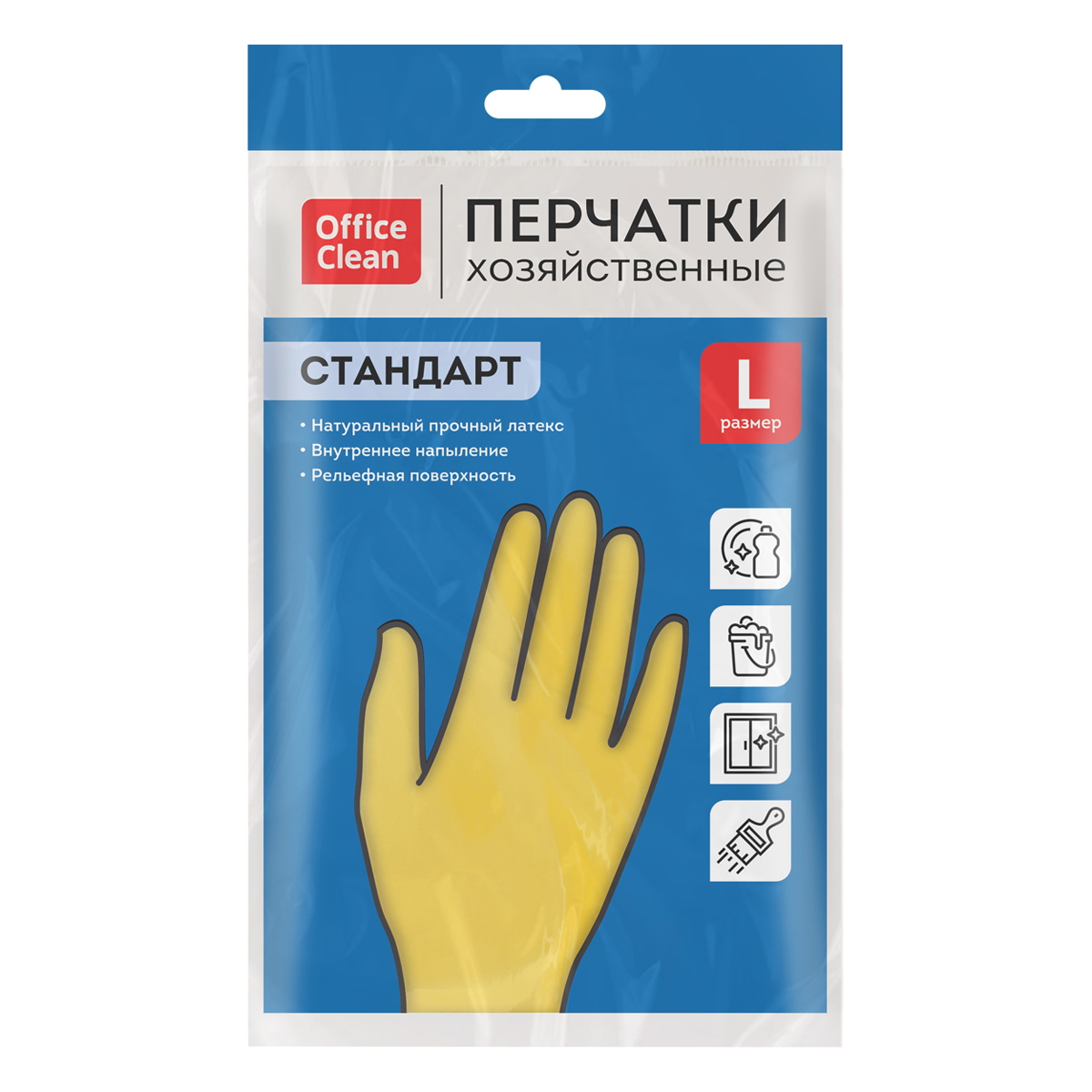 О товаре «Перчатки резиновые хозяйственные OfficeClean Стандарт, прочные, разм. L, желтые, пакет с европодвесом»