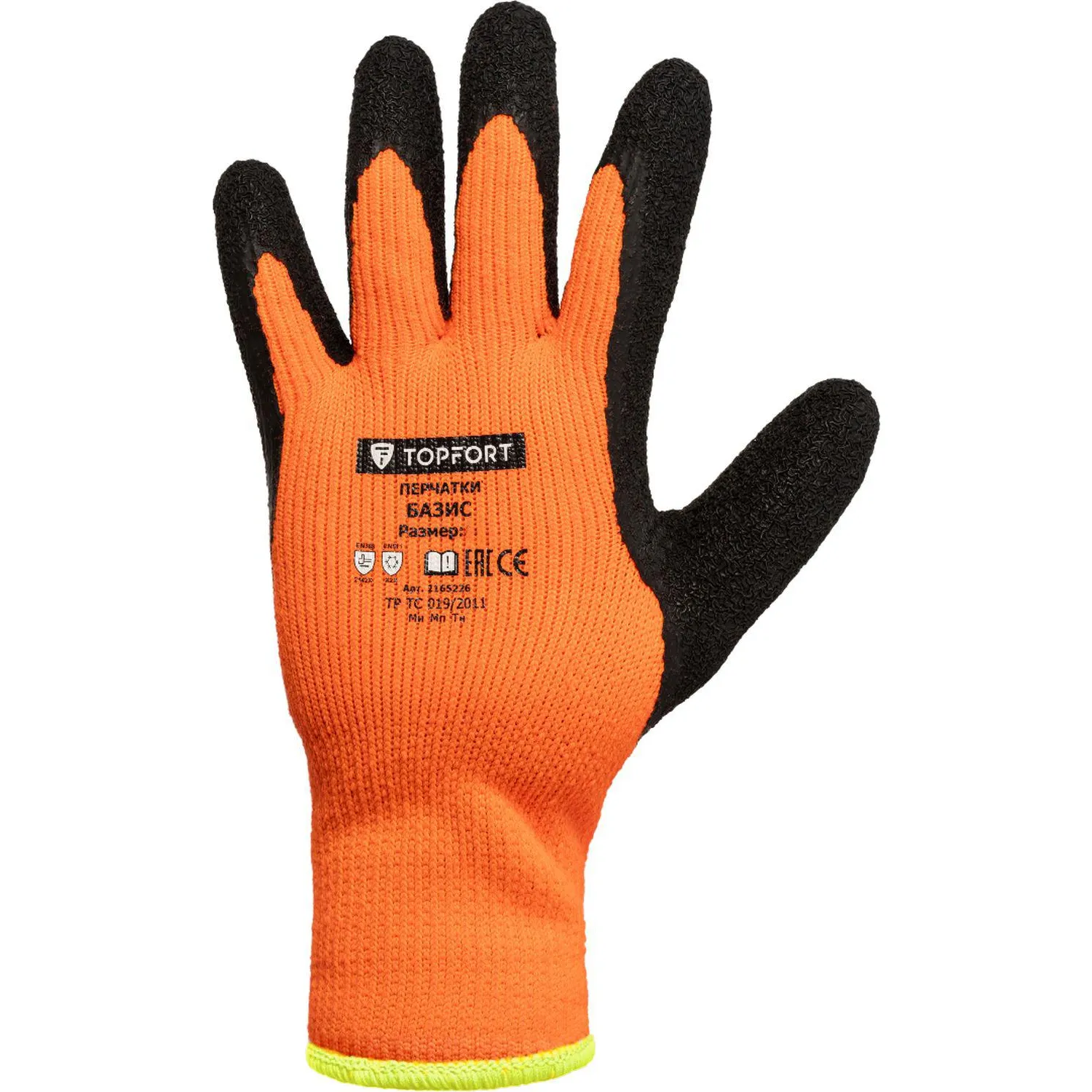 Перчатки рабочие утеплённые TOPFORT Базис акриловые с латексным покрытием оранжевые/чёрные (7 класс вязки, размер 10)