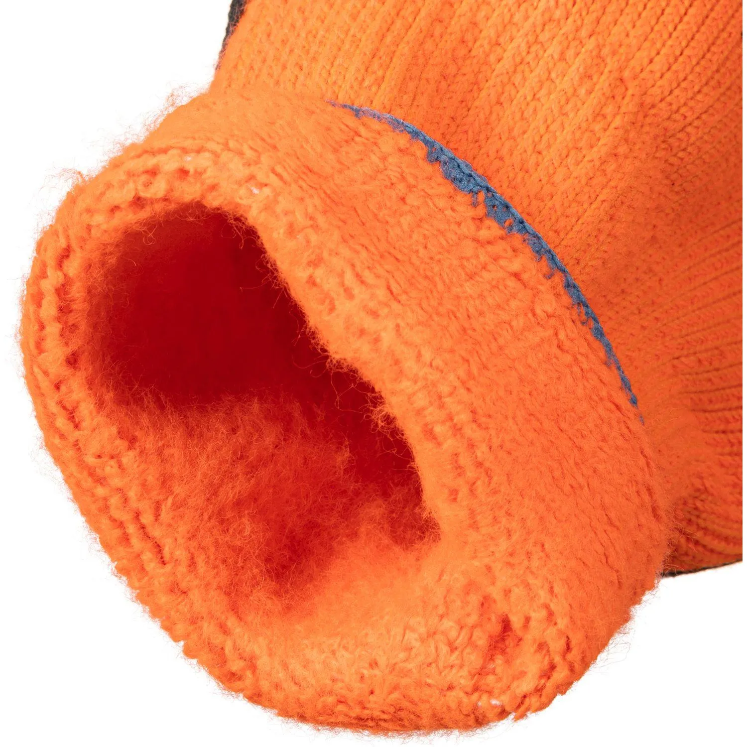 Перчатки рабочие утеплённые от пониженных температур TOPFORT Базис акриловые с латексным покрытием оранжевые/чёрные (7 класс вязки, размер 8, L)