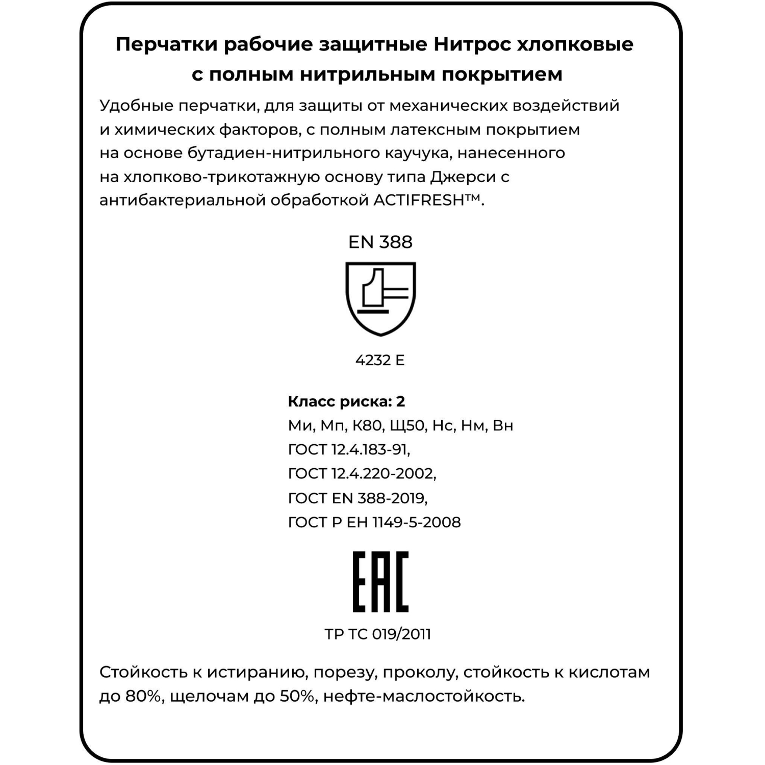 Перчатки рабочие защитные Ампаро Нитрос КП хлопковые с полным нитрильным покрытием синие (размер 10 (XL)).
