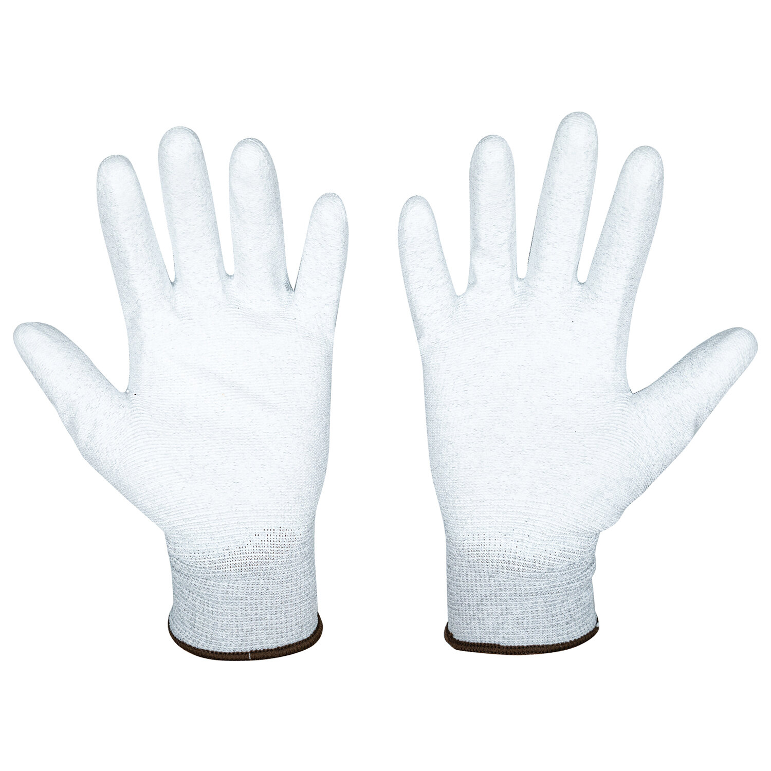 Антистатические нейлоновые перчатки серого цвета с вплетением карбоновых нитей и полиуретановым покрытием. Благодаря карбоновой нити перчатка имеет антистатические свойства, рассеивая электрический заряд. Тонкое полиуретановое покрытие одновременно очень прочное и чувствительное, а анатомическая форма перчатки снижает усталость рук при работе.