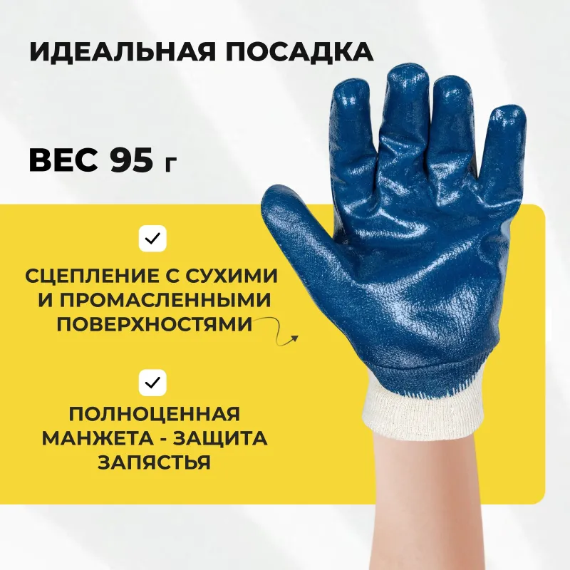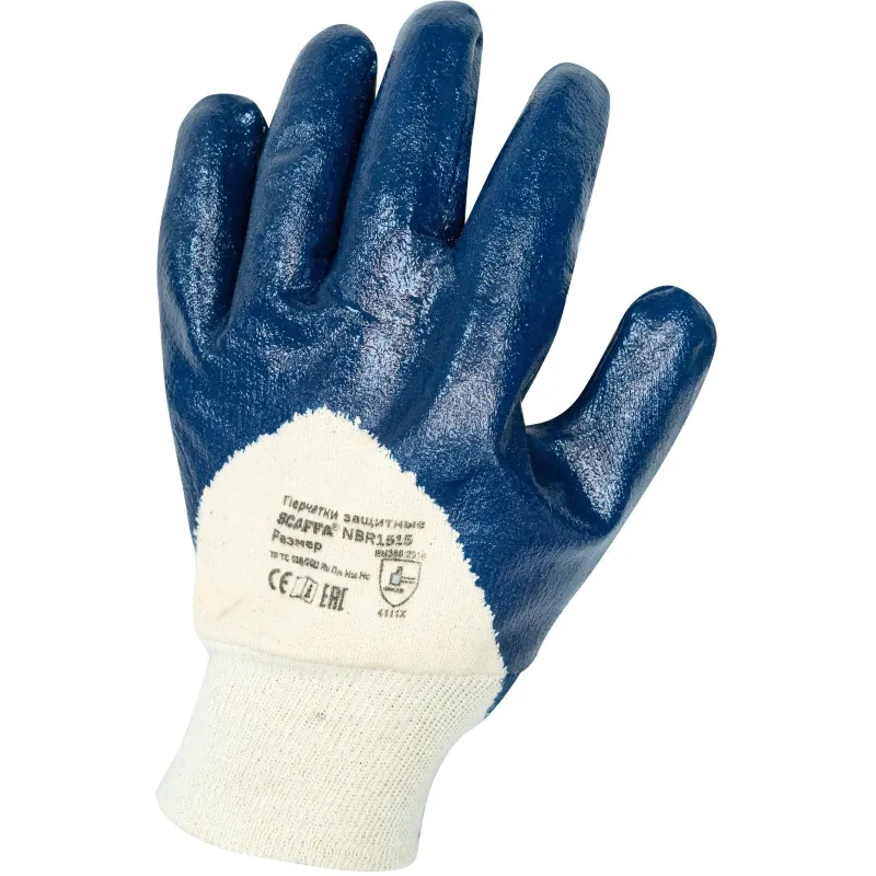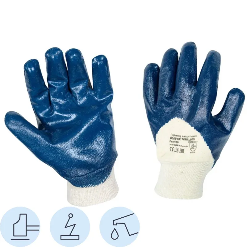 О товаре «Перчатки рабочие защитные Scaffa NBR1515 хлопковые с нитрильным покрытием белые/синие (размер 9 (L))»