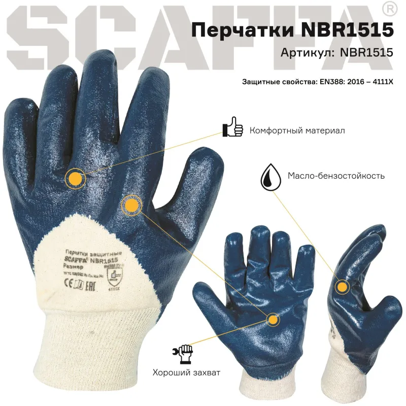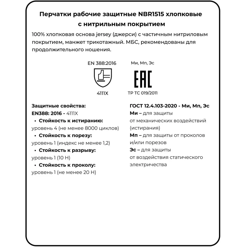 Перчатки обеспечивают высокую защиту и комфорт при длительном использовании. Защитные свойства соответствуют стандарту EN 388-4111X: