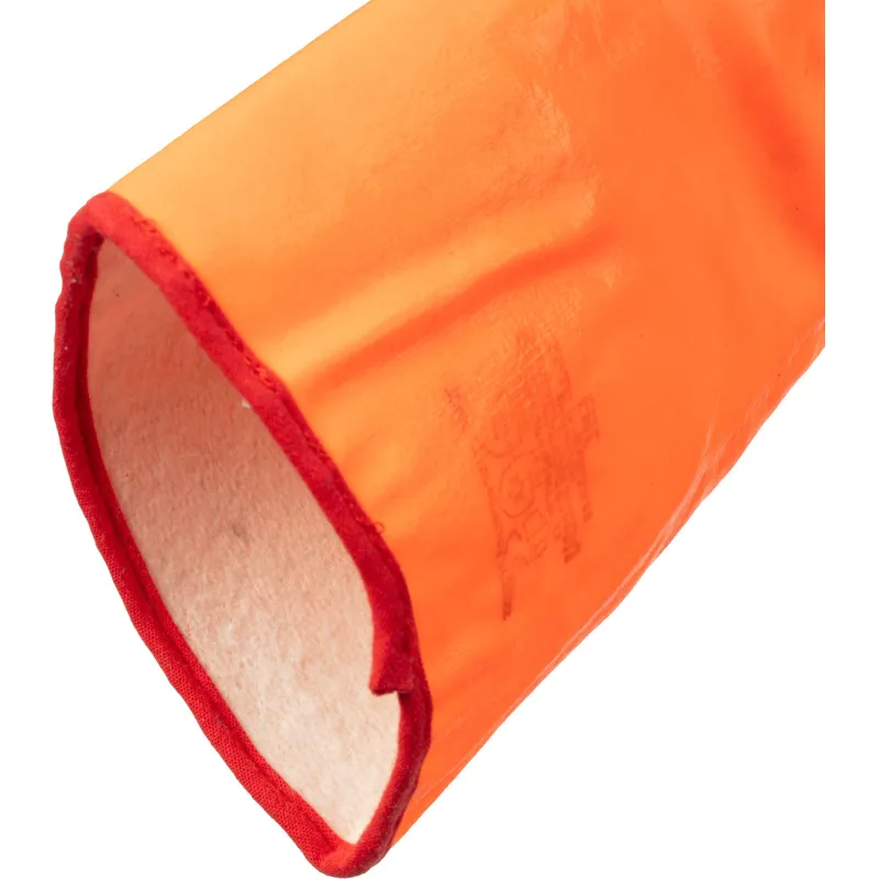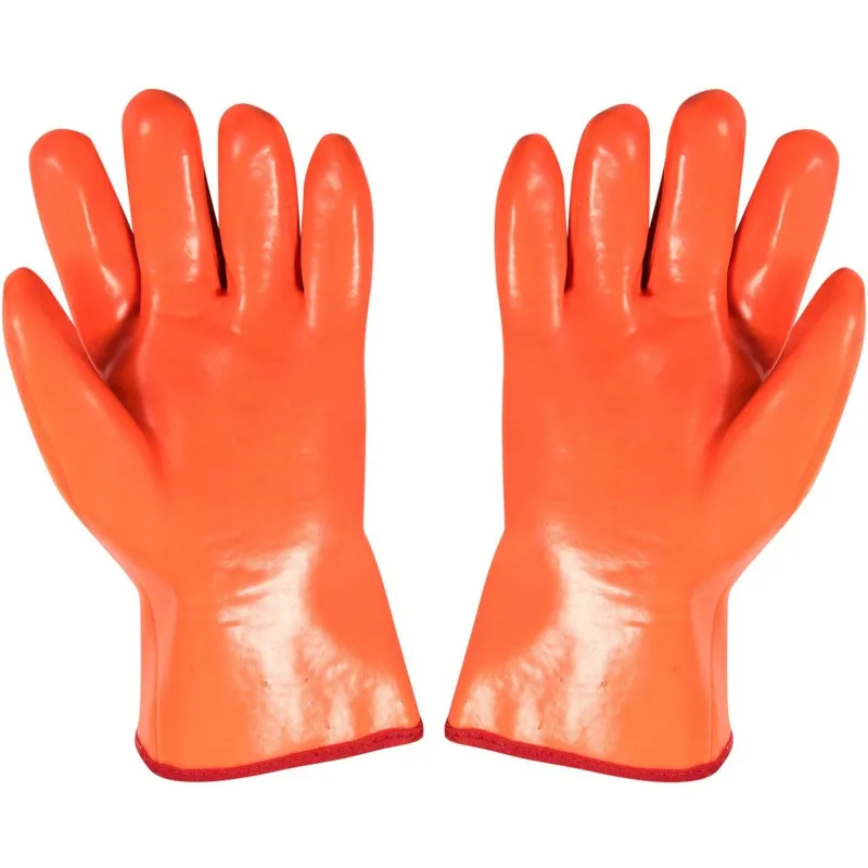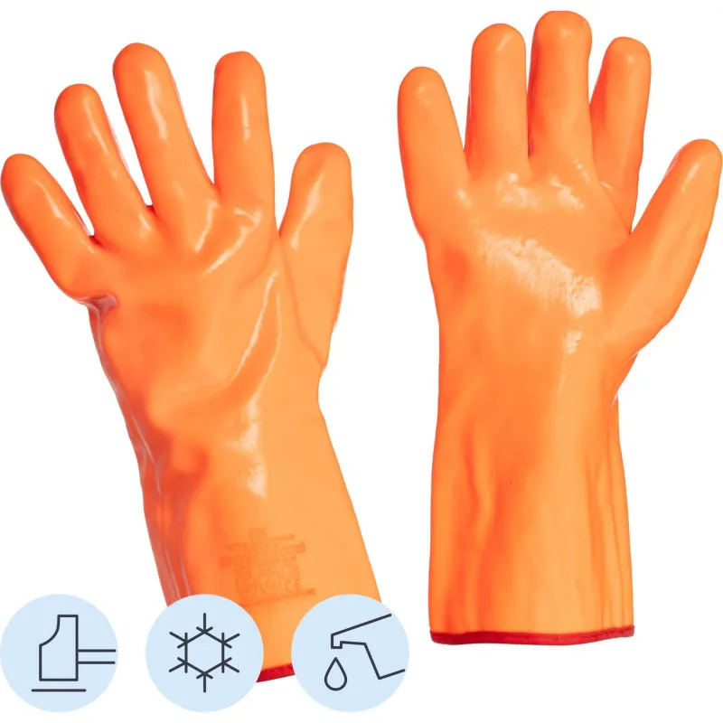 Перчатки рабочие утеплённые от порезов и проколов с ПВХ покрытием оранжевые предназначены для защиты рук от механических воздействий, проколов, порезов, а также от воздействия масел, нефти, нефтепродуктов, растворов кислот (до 50%) и щелочей (до 30%) в условиях пониженных температур. Они незаменимы при выполнении тяжёлых работ в строительной, нефтегазовой, химической, деревообрабатывающей, машиностроительной и других отраслях промышленности.