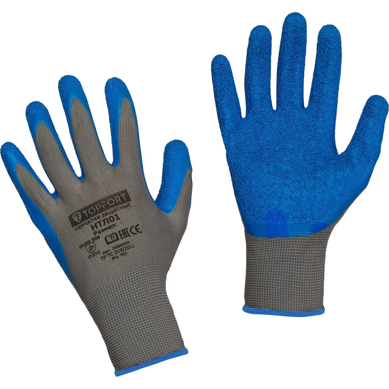 Перчатки для защиты от порезов TOPFORT НТЛ 01 (размер 9 (L) изготовлены из нейлона с текстурированным латексным покрытием. Основа бесшовная, с плотностью вязки 13 петель на дюйм, что обеспечивает высокую чувствительность пальцев.