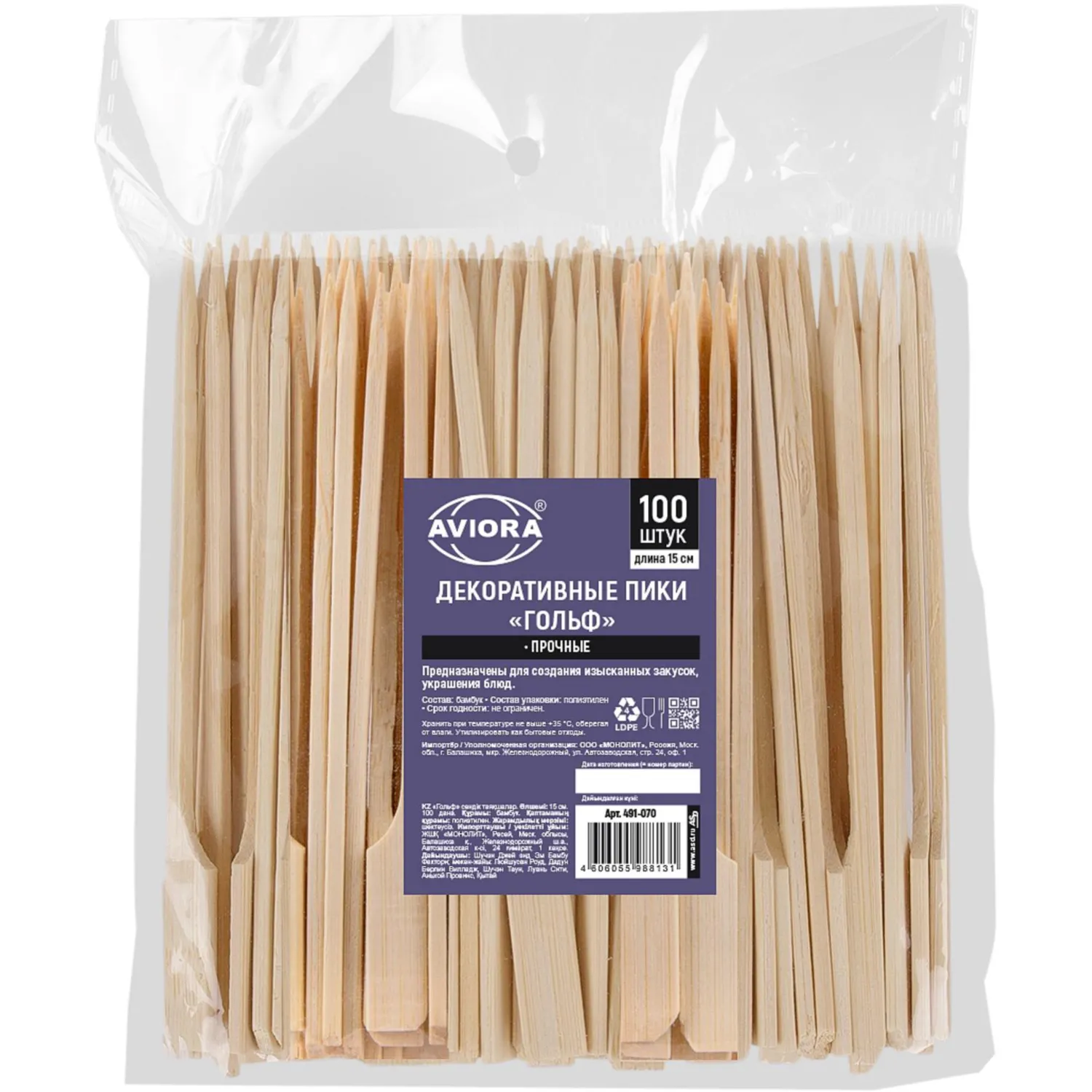 Пики для канапе Aviora Гольф — это разновидность деревянных шпажек для шашлыка, но в отличии от круглых по всей длине стеков, пика Гольф имеет на конце удобную плоскую поверхность, за которую комфортно брать пику.