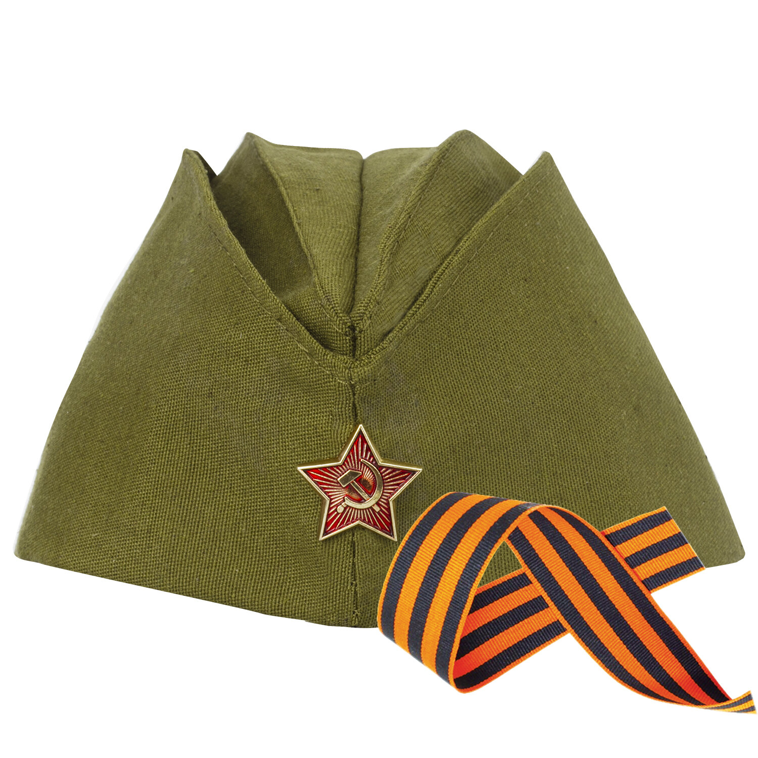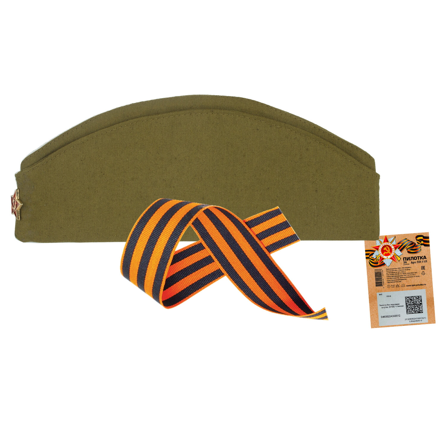 На пилотке закреплена металлическая звезда диаметром 25 мм. В качестве подарка к пилотке приложена георгиевская лента размером 24х250 мм. Качественные материалы и мастерство исполнения гарантируют долгий срок службы пилотки.