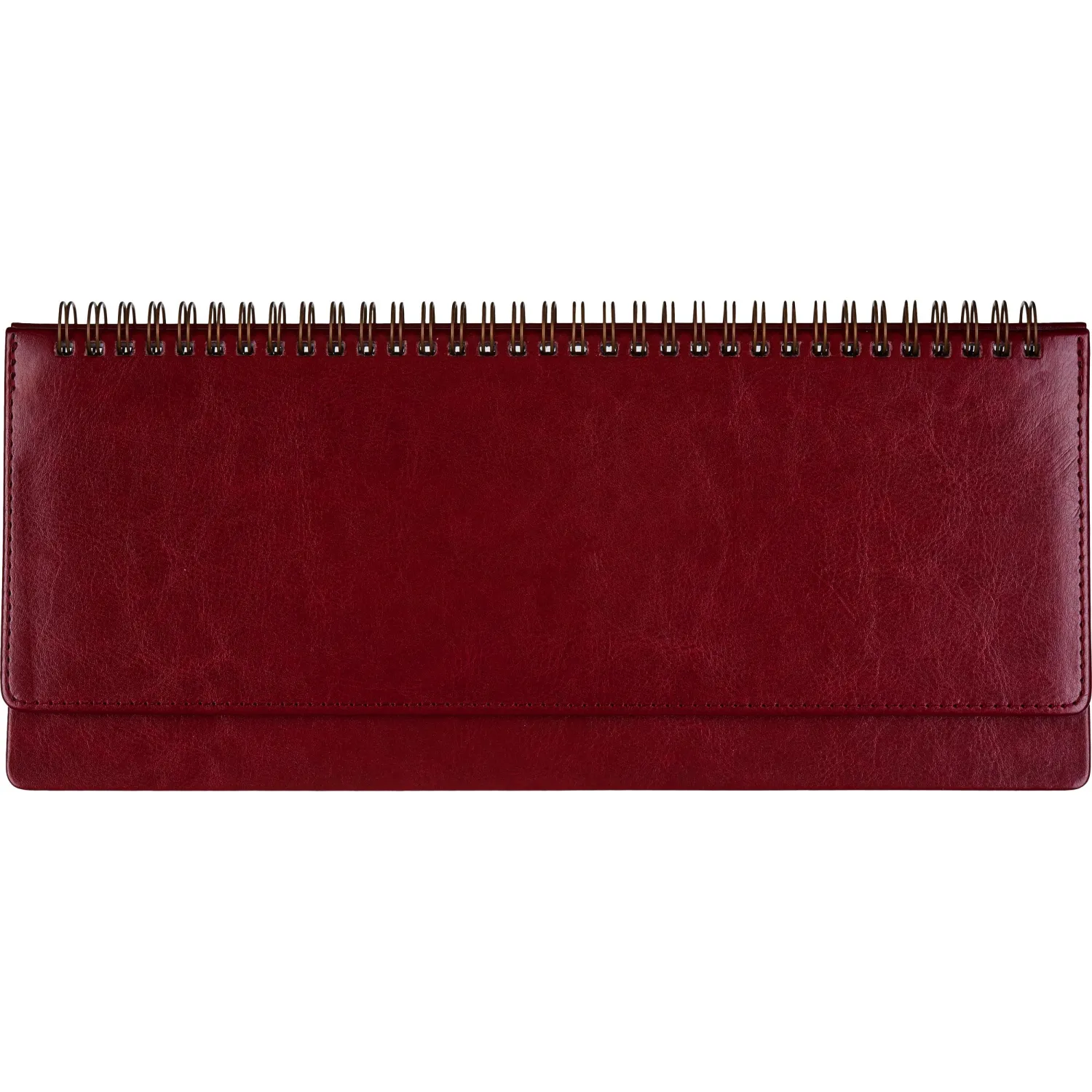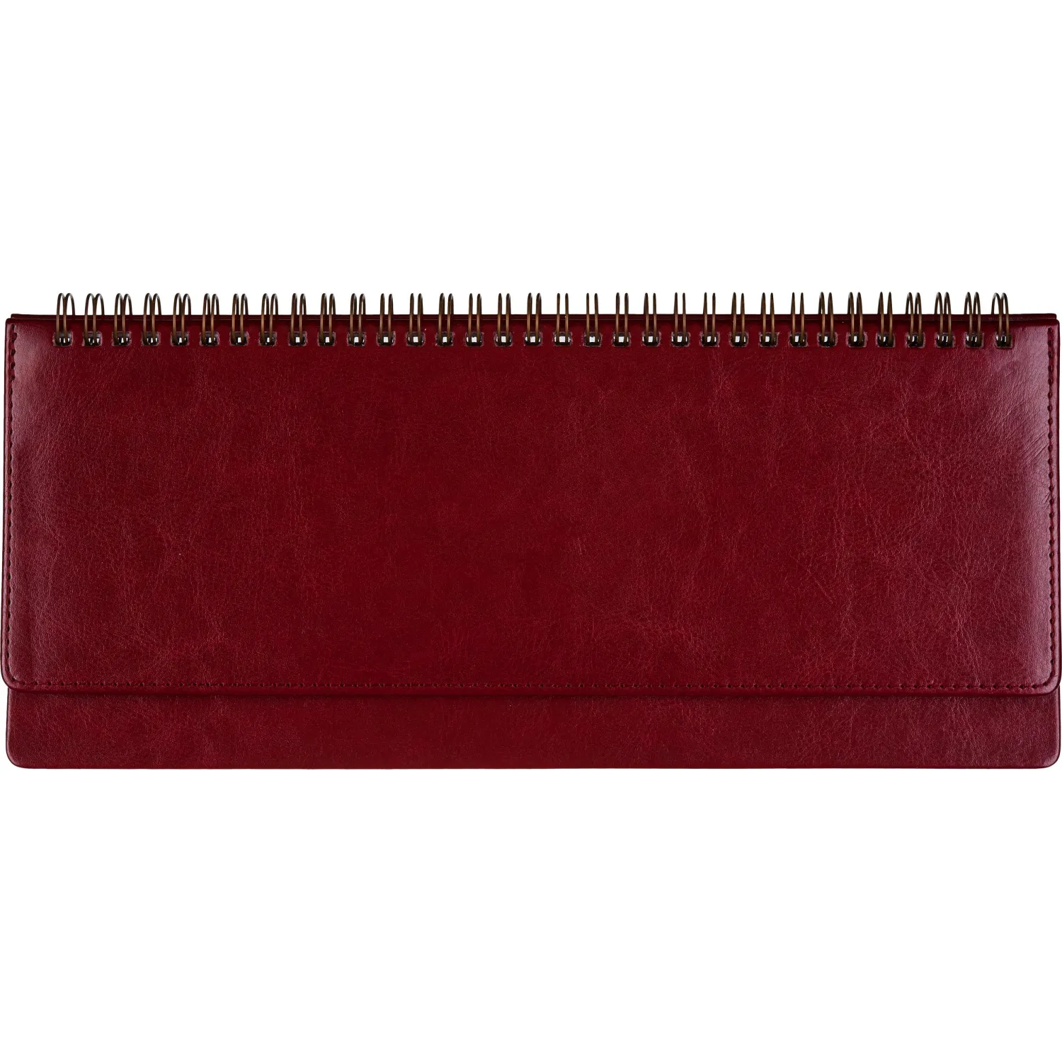 Планинг недатированный из коллекции Sidney Nebraska удобен для планирования рабочего времени, встреч, совещаний, задач. Имеет твёрдую обложку из итальянской искусственной кожи бордового цвета. На неё можно нанести тиснение, выполнить шелкографию или УФ-печать. Универсальный офисный стиль планинга дополнен реальным швом по периметру в цвет материала. Спиральный тип крепления позволяет легко перелистывать страницы и удалять ненужные. Благодаря компактному размеру (305×130 мм) и скруглённым уголкам планинг можно брать с собой в дорогу: он не займёт много места и не повредит подкладку сумки или портфеля. Предусмотрен информационный блок, который включает страницы с личными данными, часовыми поясами, аэропортами Европы и прочими справочными данными.