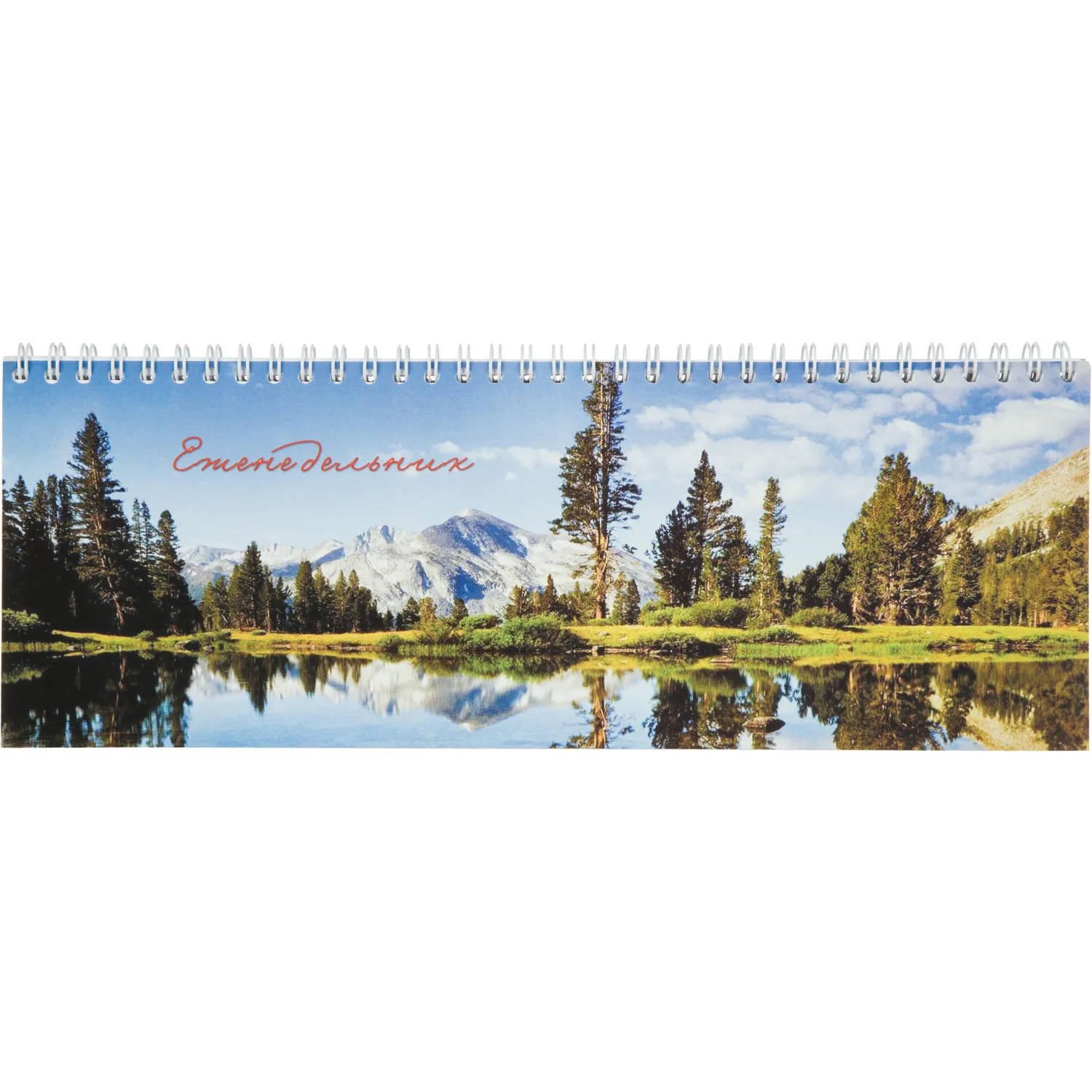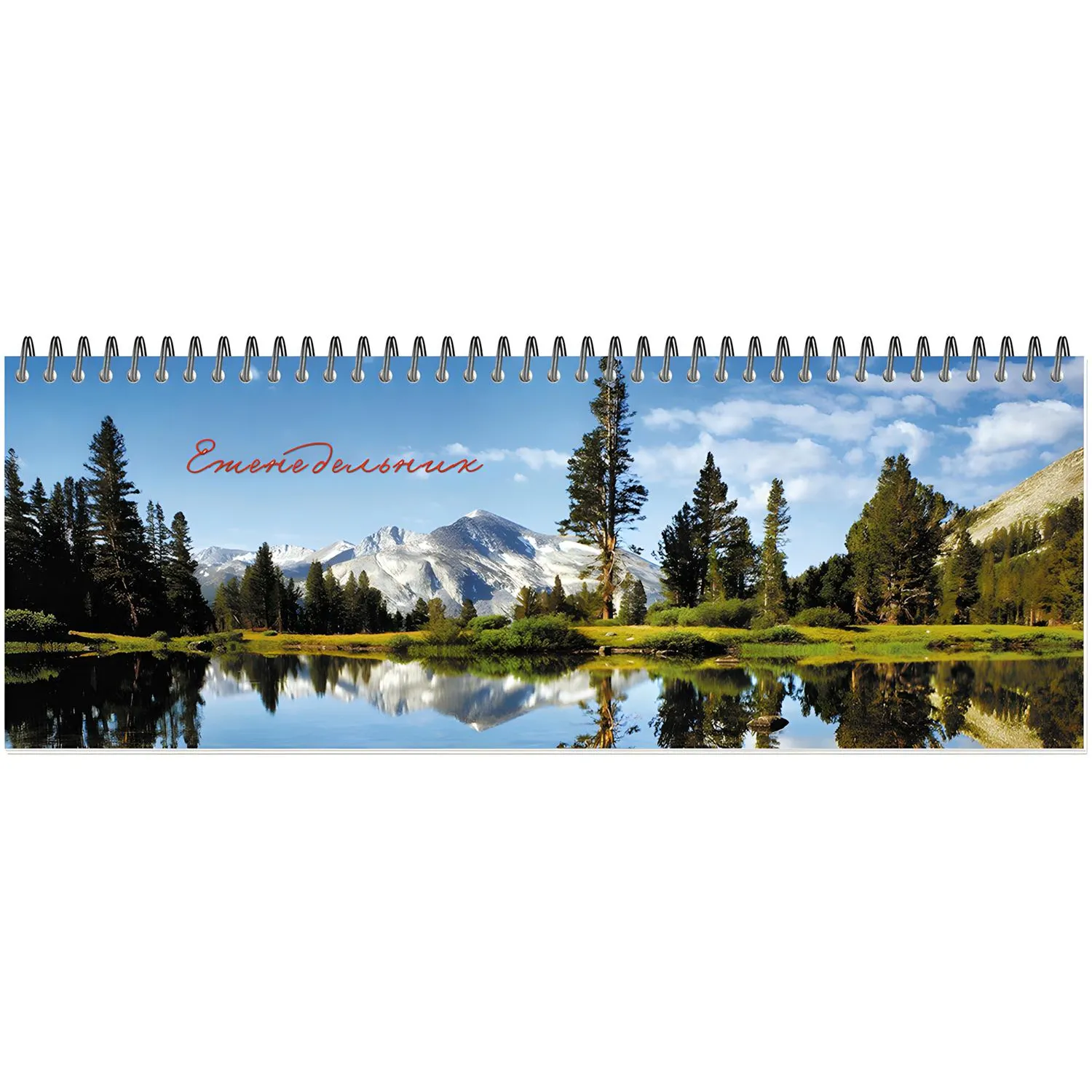 Недатированный планинг предназначается для эффективного планирования рабочего, личного и учебного времени. Он позволяет удобно зафиксировать информацию о предстоящих встречах, совещаниях и прочих событиях. Мягкая обложка выполнена из картона, имеет лакированное покрытие. Эмоциональный, яркий дизайн включает фотографию природного пейзажа. Возможно нанесение тиснения фольгой или шелкографией, тампопечатью. Размеры изделия составляют 295×100 мм. Листы крепятся на спираль. Внутренний блок выполнен из высококачественного офсета, плотность бумаги — 80 г/кв. м. Планинг содержит календарь на 4 года (2022-2025), а также таблицу с кодами междугородной телефонной связи и поле для заметок.