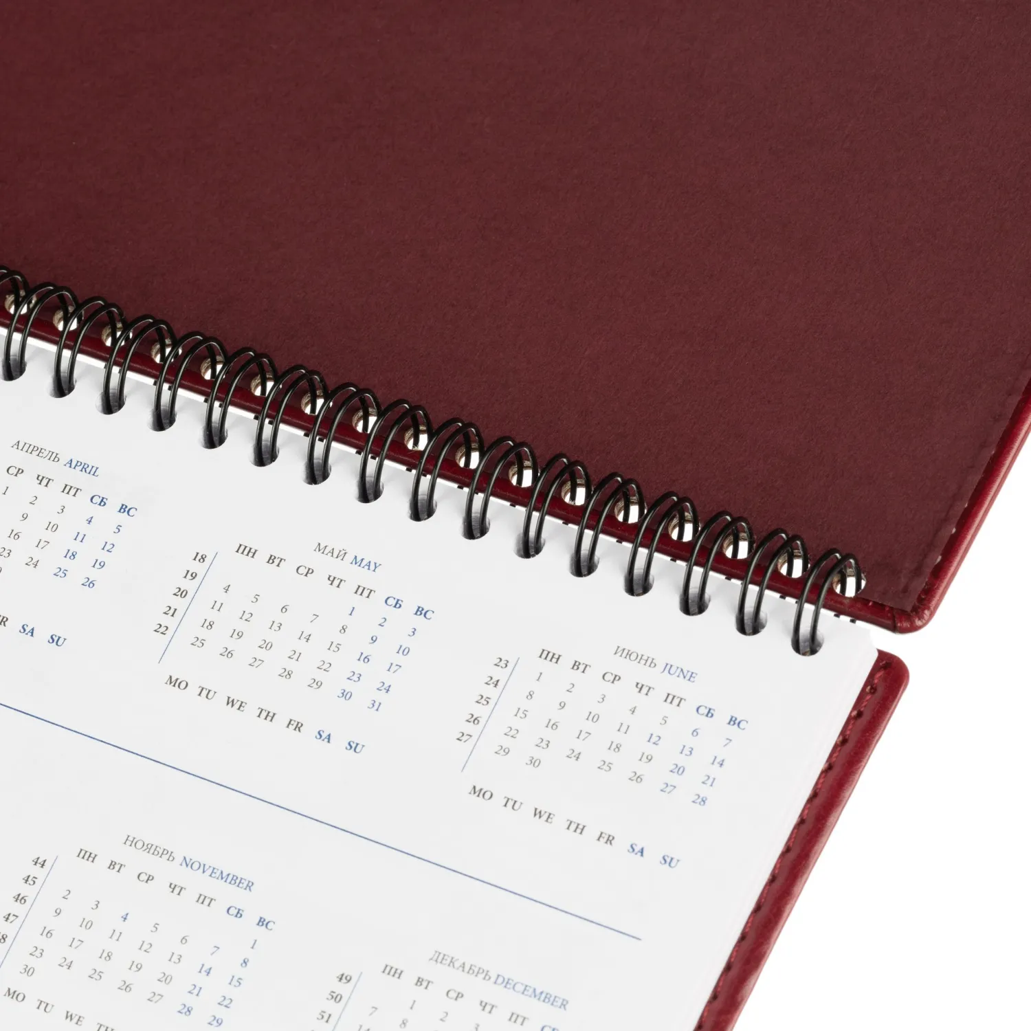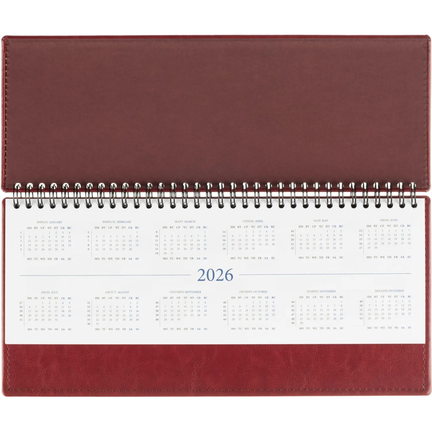 Твёрдая обложка из высококачественной искусственной кожи бордового цвета придаёт изделию элегантный вид и делает его приятным на ощупь.