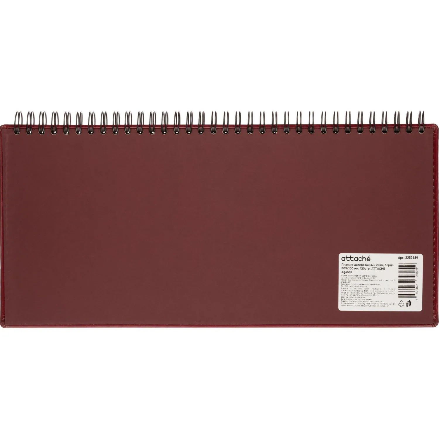 О товаре «Планинг датированный 2026, бордо, 303х150 мм, 120стр, АТТАСНЕ Agenda»