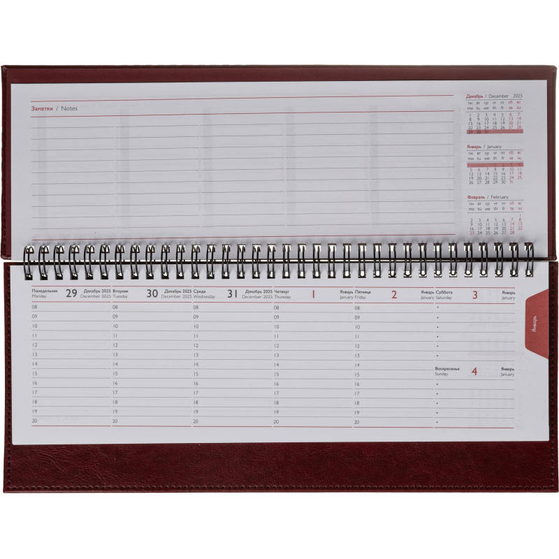 Планинг датированный 2026 год Escalada искусственная кожа 310×130 мм 64 листа бордовый
