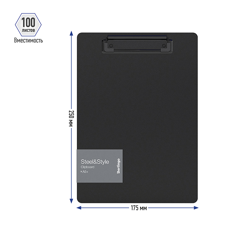 Прочный стильный планшет с зажимом Berlingo серии Steel&Style формата А5+ позволяет удобно делать записи на весу. Планшет изготовлен из полифома толщиной 2500 мкм. Вмещает 100 листов.Планшет имеет насыщенный красный цвет оборотной стороны в сочетании с фактурой "сталь" и чёрный цвет внутренней поверхности с чёрным прижимом. Металлический зажим надёжно фиксирует документы, не повреждая их. Размер планшета с зажимом - 250*175 мм. Упакован в индивидуальный пакет с липким краем.