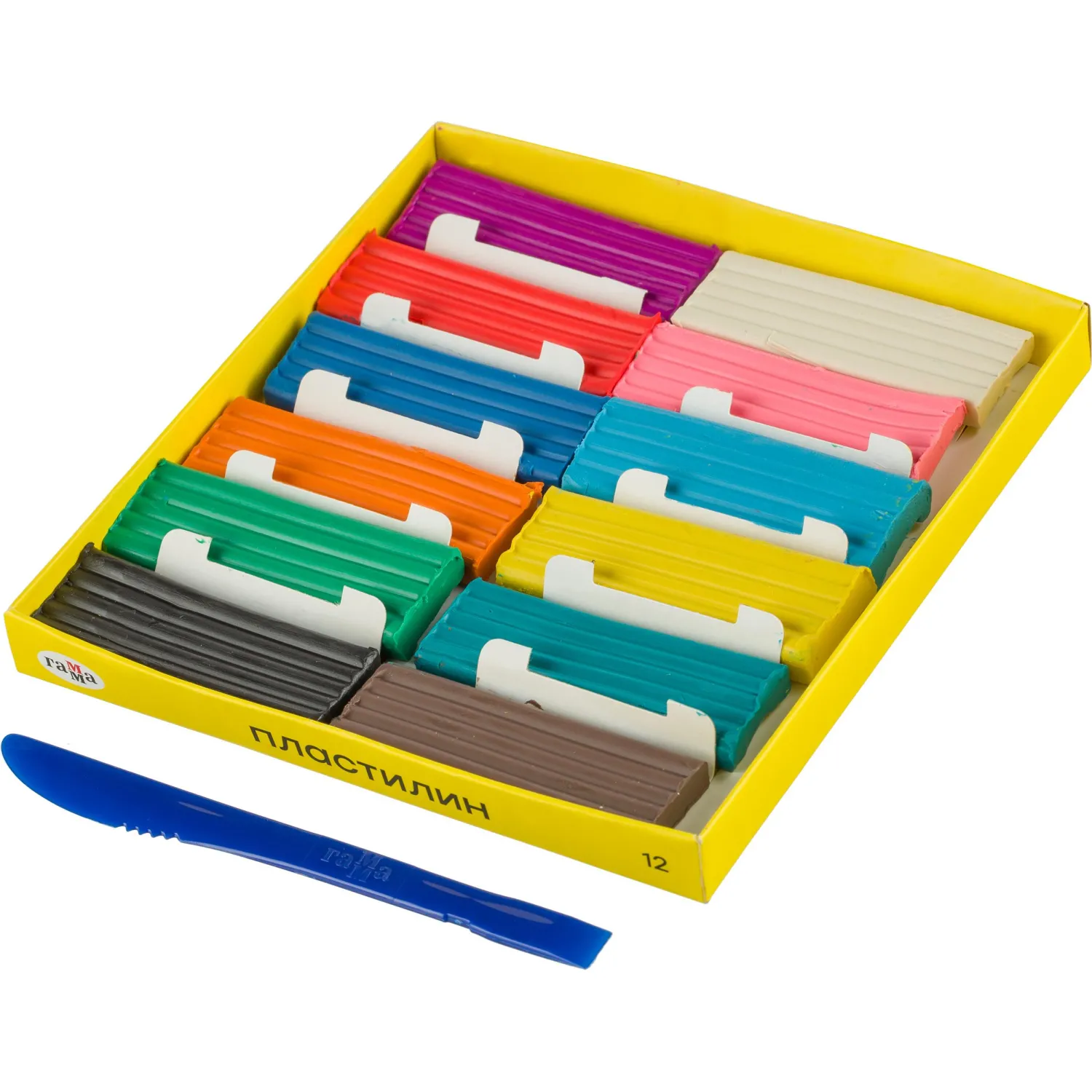 Пластилин Гамма, 12 цветов, 240г, со стеком, картон. упаковка