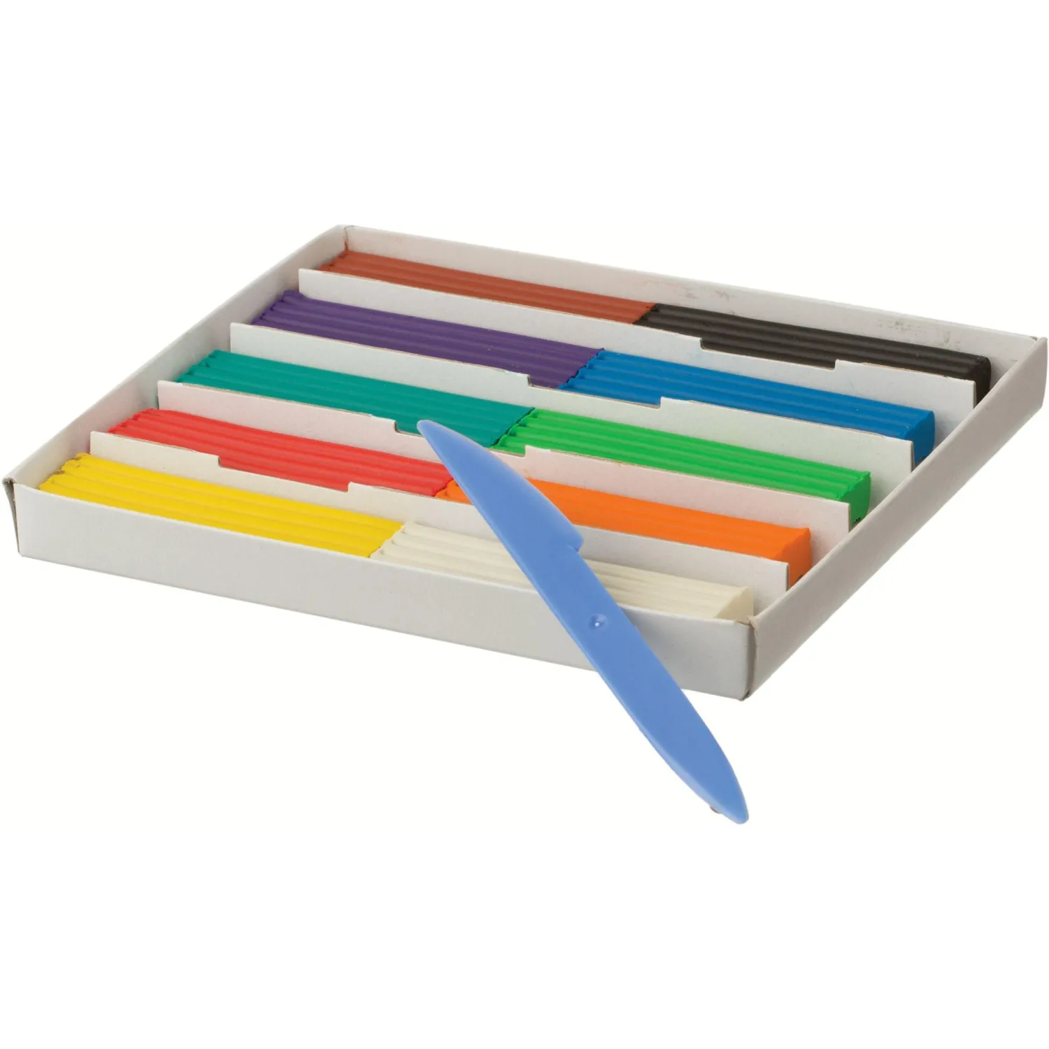 Пластилин изготовлен из высококачественных компонентов. Он не окрашивает руки, не прилипает к пальцам, хорошо держит форму, легко смешивается и мягко растягивается при нагревании. В набор входит стека длиной 13 см, которая позволяет наносить орнамент на изделия, позитивно влияя на творческое мышление ребенка.