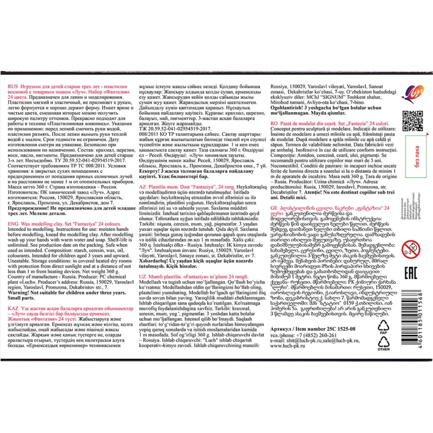 Пластилин восковой Луч Фантазия 24 цвета 360 грамм