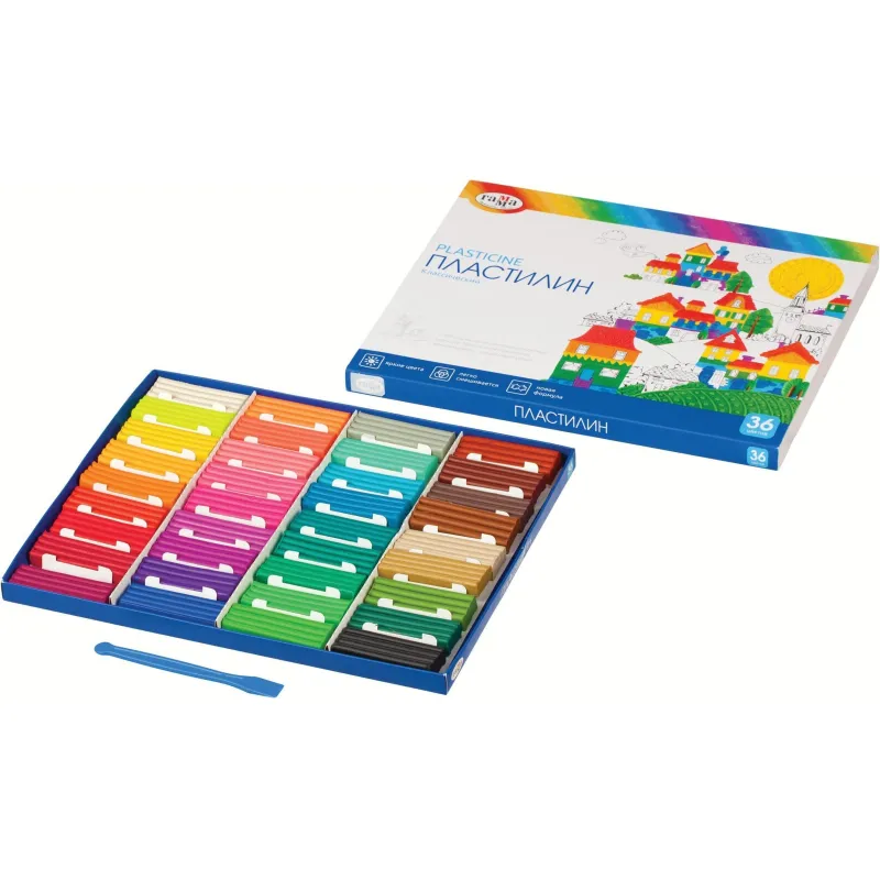 Пластилин ГАММА серии «Классическая» — это 36 брусков ярких насыщенных цветов. Пластиковый стек в комплекте. Вес одного  бруска — 20 г. Пластилин разработан для детей от 7 до 12 лет. Благодаря улучшенной формуле становится эластичным при разминании, не рвётся на фракции, хорошо держит форму и позволяет лепить тончайшие детали. Прекрасно подходит для создания картин в технике пластилинографии. Не пачкает руки и рабочую поверхность.