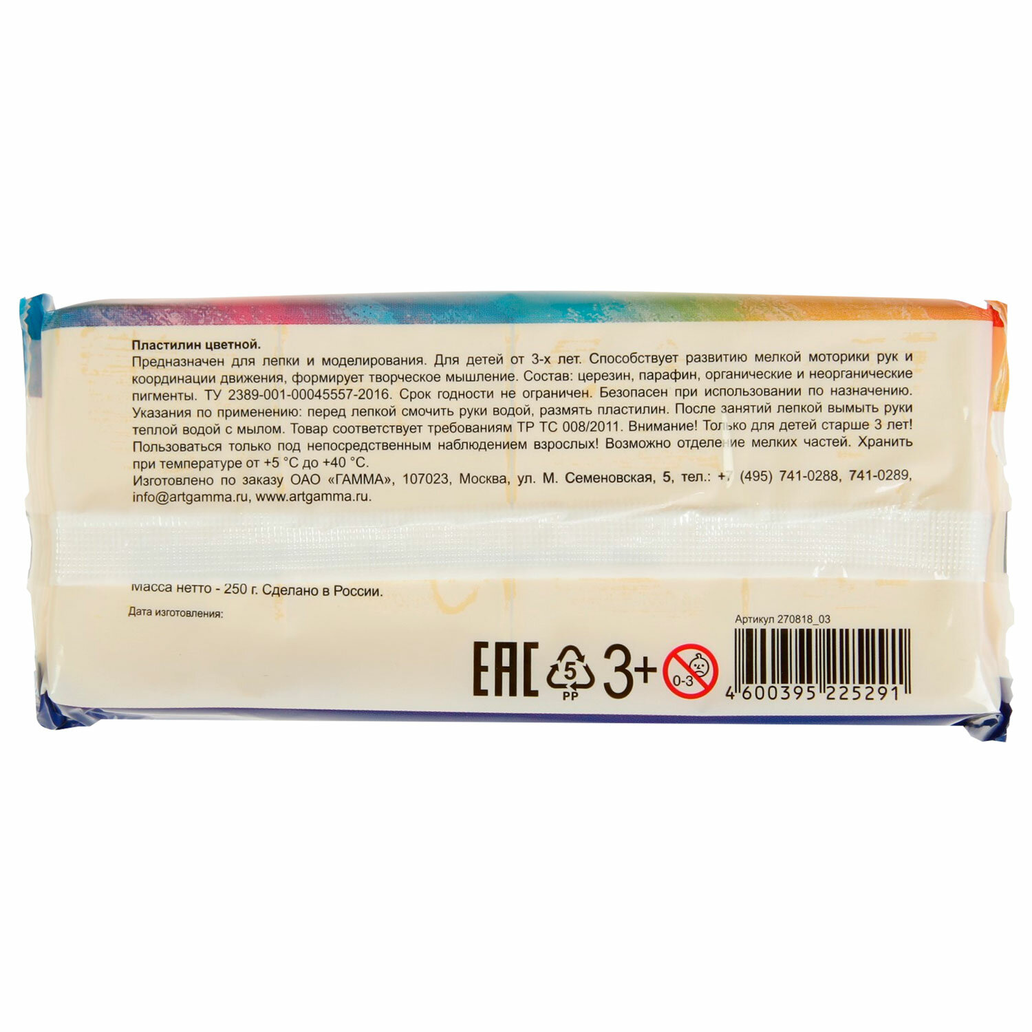 О товаре «Пластилин классический ГАММА "Классический", желтый, 250 г, 274070»