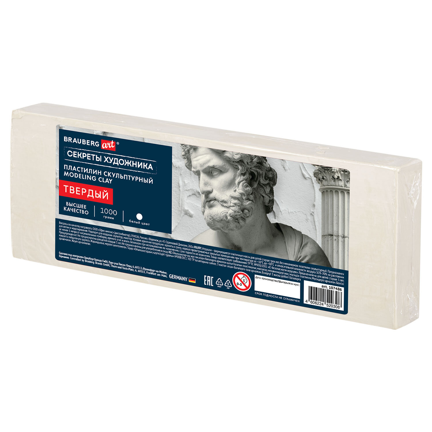 О товаре «Пластилин скульптурный ТВЕРДЫЙ БЕЛЫЙ "Секреты художника", 1 кг, BRAUBERG ART, 107486»