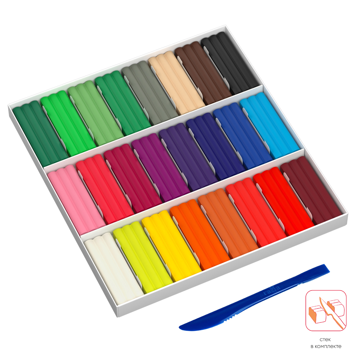 Пластилин Гамма, 24 цвета, 480г, со стеком, картон. упаковка